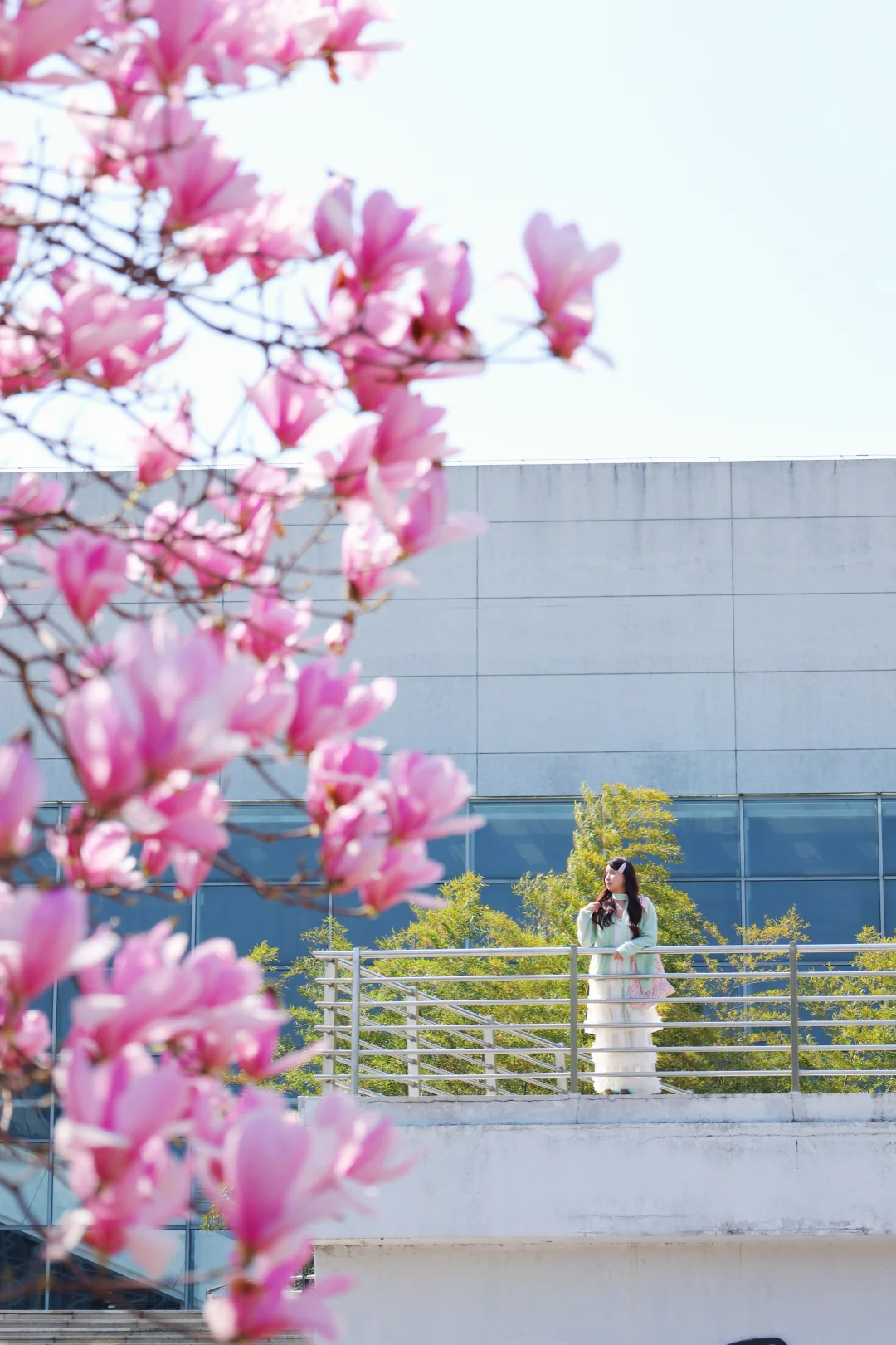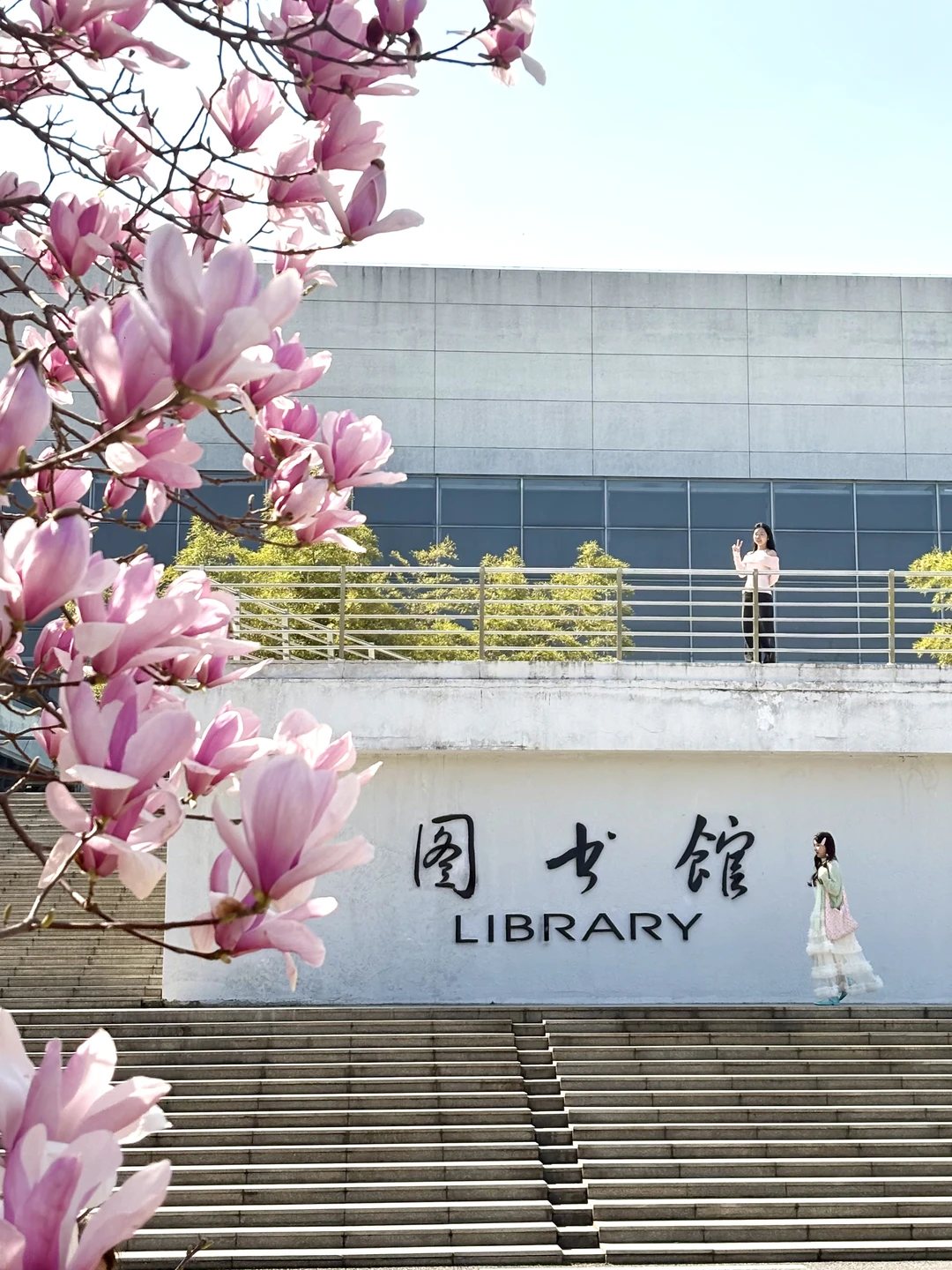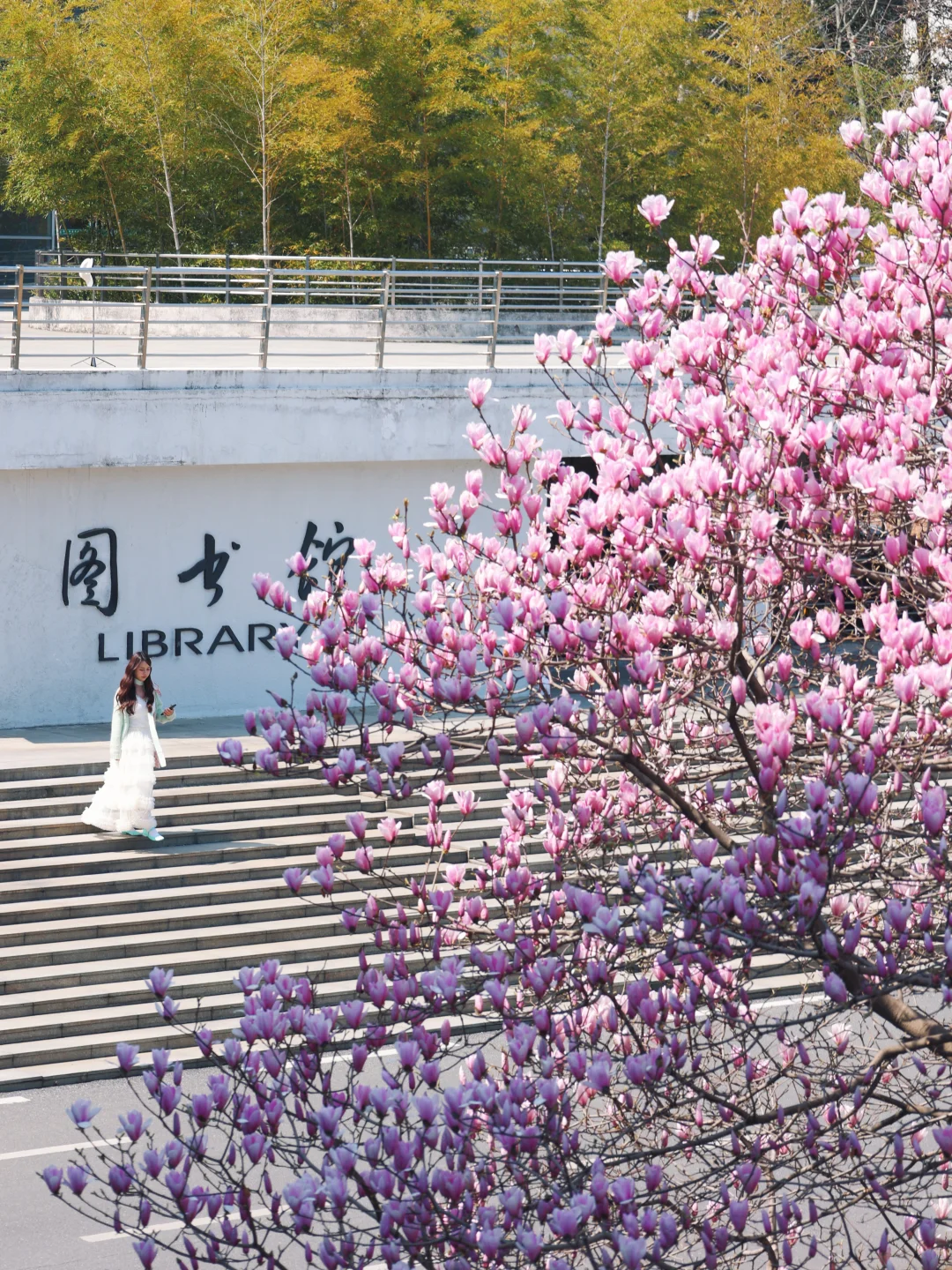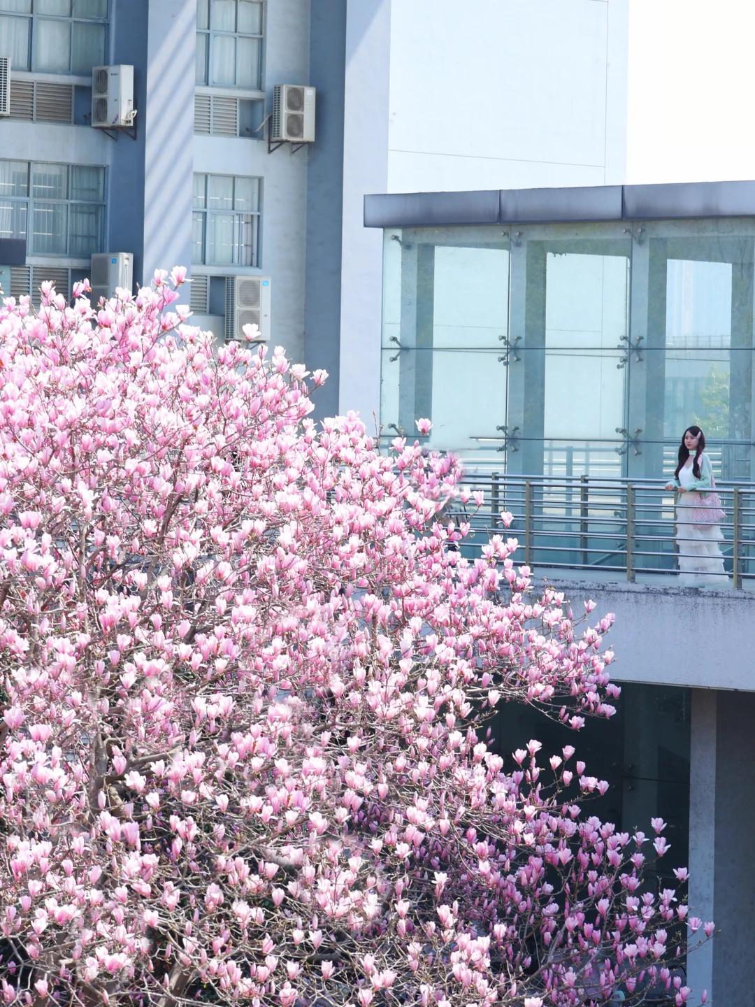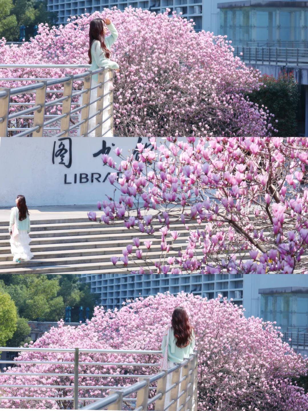 华农的玉兰花真的好好拍📸 粉粉的花衬得人都温柔啦~ 还有🆓的小梯子🪜,不怕拍不了高处的花🌸 就在【华中农业大学图书馆】门口 整个二楼长廊都是机位,坐着站着都好看~ 从学校西门进,进去后可以骑车到图书门口! 自驾学校也可以进!!很方便🚗 -