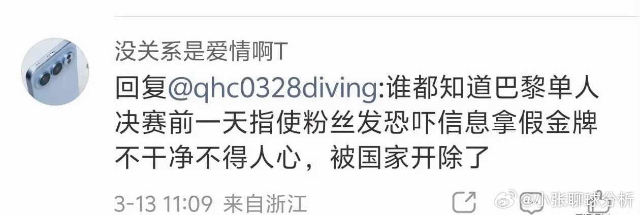 该网友喜欢的是另一位跳水奥运冠军,这很正常,但她的言行,已经是典型的饭圈乱象。近日,国家体育总局局长高志丹表示将大力整治体育“饭圈”乱象,而中国冬奥首金得主杨扬则为被饭圈网暴的运动员心痛,表示要培养真正的体育迷,让她们了解竞赛、了解运动员、了解规则、了解体育精神。