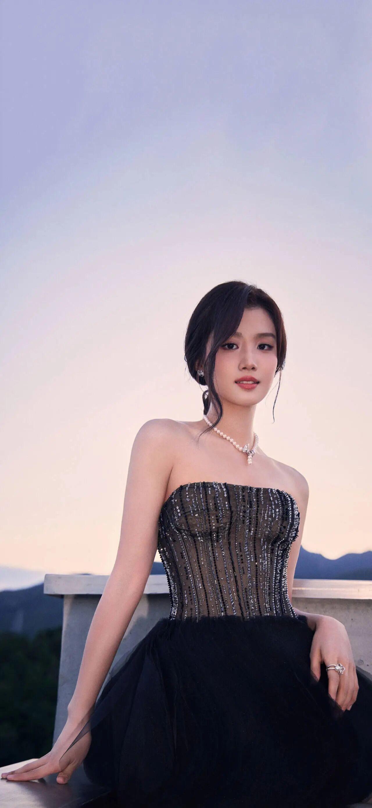 卢昱晓粉紫抹胸裙晕开温柔光晕,紫钻花枝缠绕腰侧,眉眼间是藏不住的清灵与矜贵,