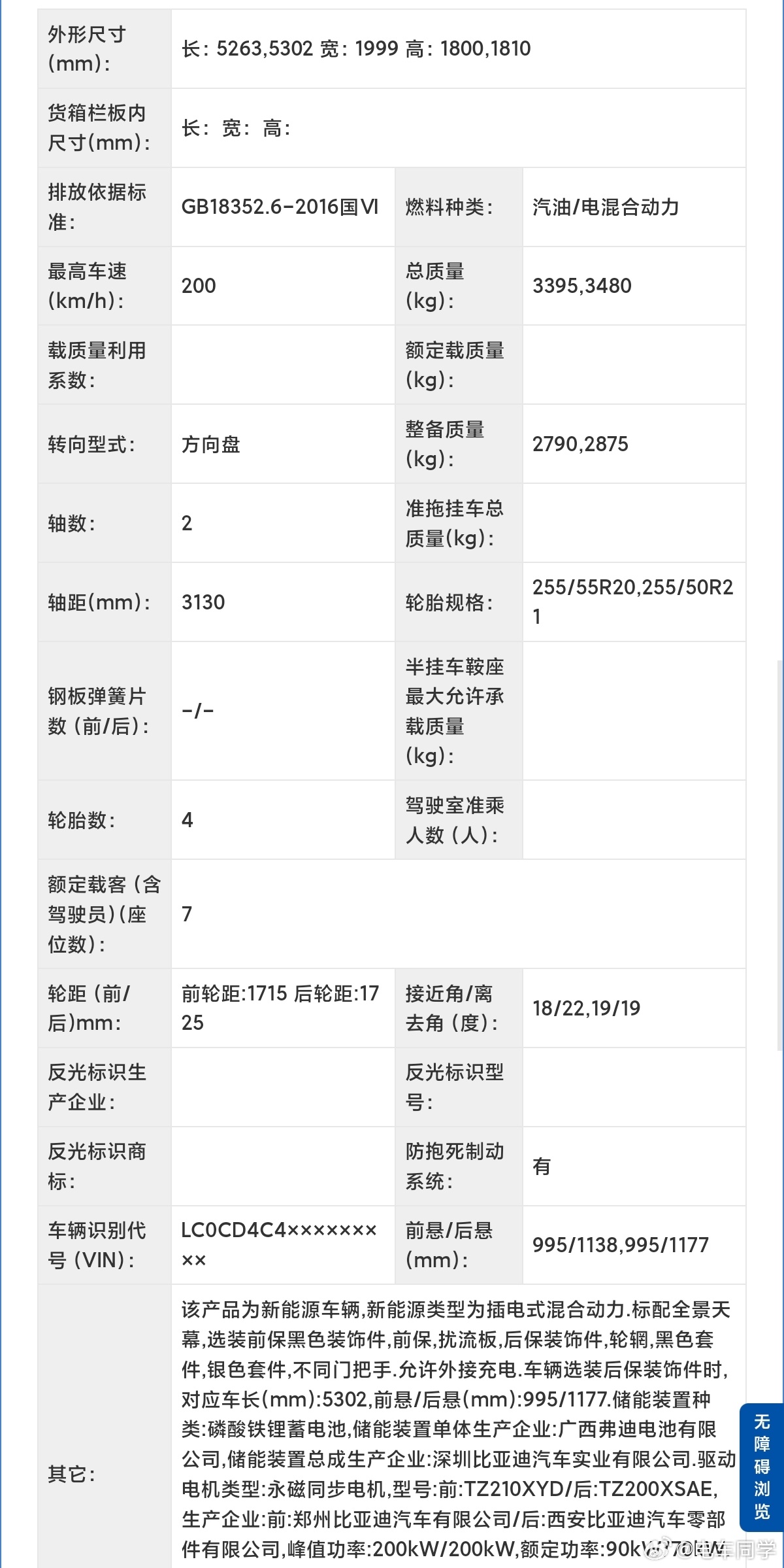 工信部申报 比亚迪大唐 DM-p 66kWh 的电池,WLTC 纯电续航 342