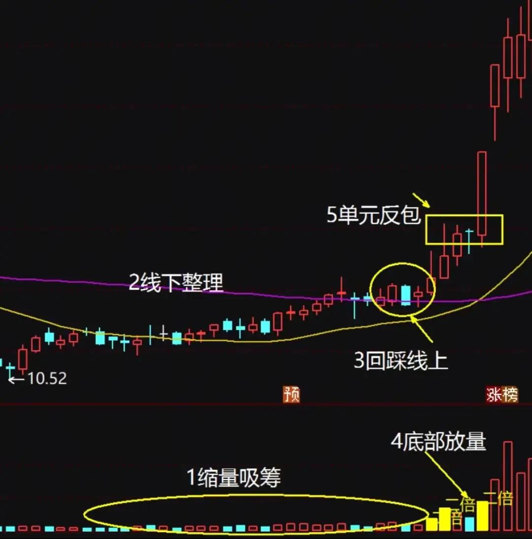 五步起爆法:精准捕捉主升浪 炒股痛点在于“猜顶摸底”。此法基于量能与均线,锁定主力洗盘终点,只做确定性起爆段。 核心五步: 1. 缩量吸筹: 低位横盘,量能萎缩,主力暗中建仓,列入自选。 2. 线下整理: 小幅拉升触及20日线后回落其下,以小阴小阳洗盘,测试支撑且不创新低。 3. 回踩线上: 股价回踩20日线获支撑并快速收回,抛压耗尽,企稳待涨。 4. 底部放量: 企稳后成交量突增1-2倍,主力进场信号,股价突破整理平台。 5. 单阳反包: 放量长阳吞没前方小K线,此为最佳入场点,预示主升浪开启。 实战要点: * 纪律: 耐心等待信号,不做情绪奴隶。 * 风控: 结合大盘板块,跌破20日线止损。 * 本质: 摒弃运气,依靠可复制的模式盈利。