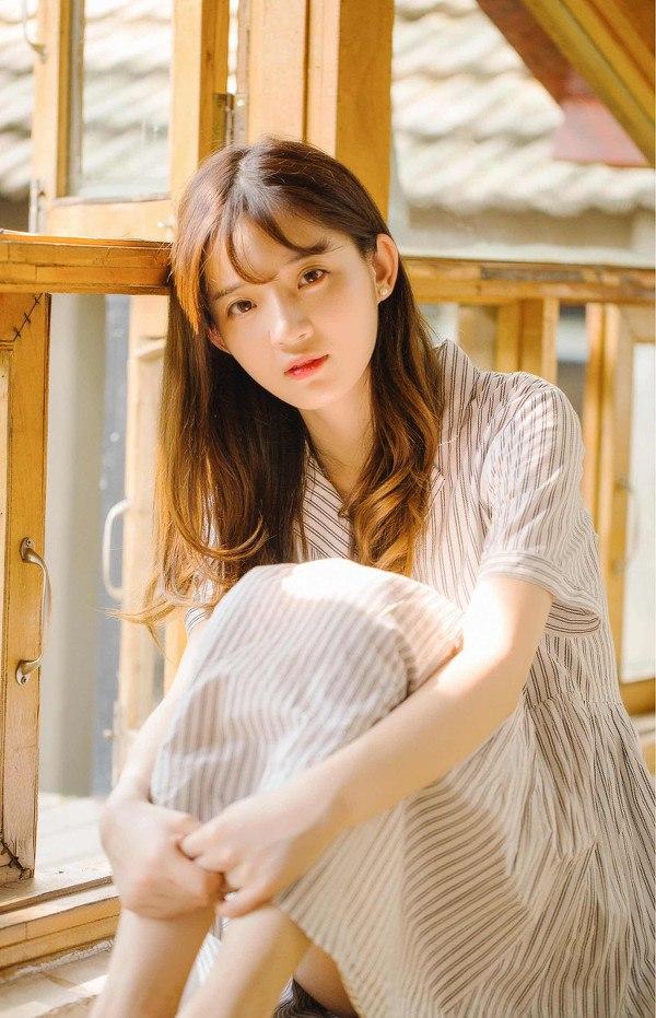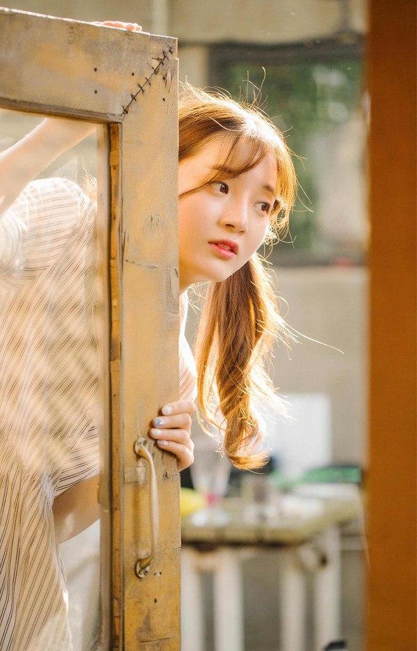 阳光洒进木屋,少女轻抚发梢,温柔如初。高清美女 少女 自然清新美少女