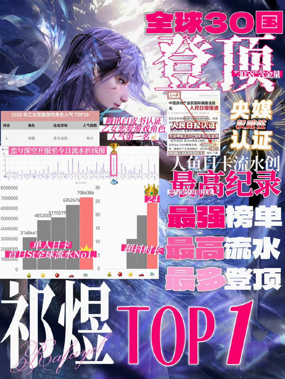 恋与深空芬达不知道 只知道tx官方认证的白皮书top1是祁煜 0306全球热恋!