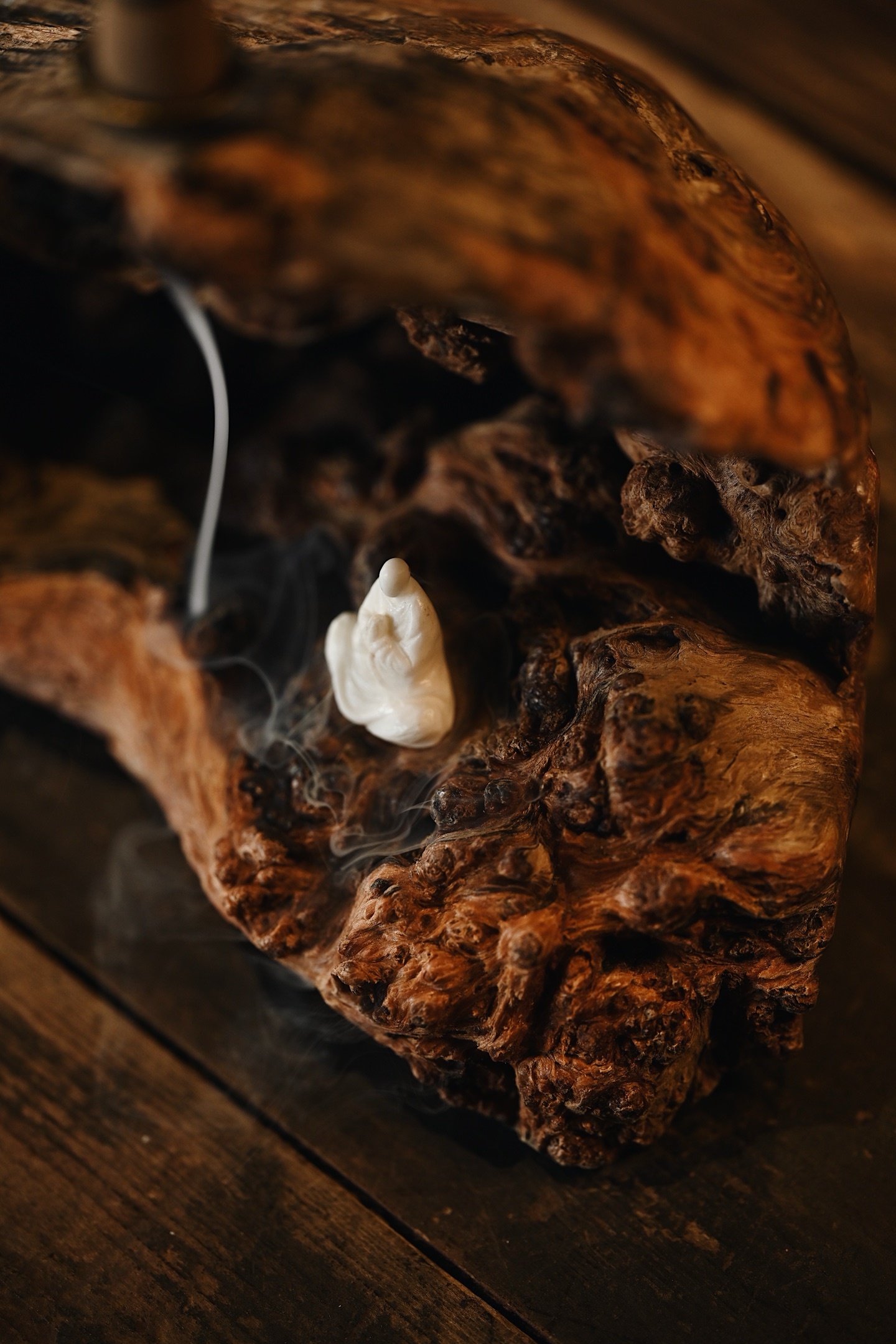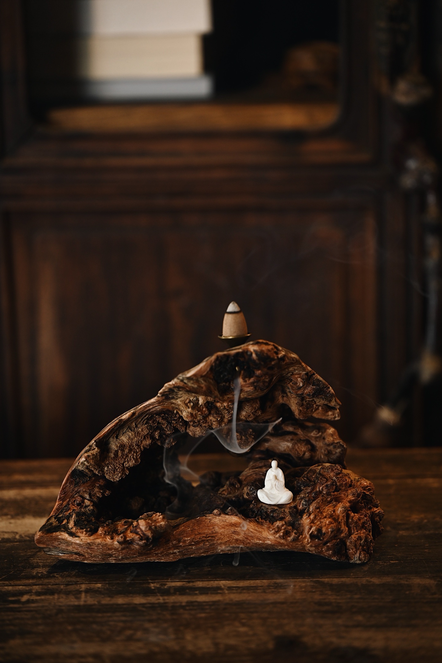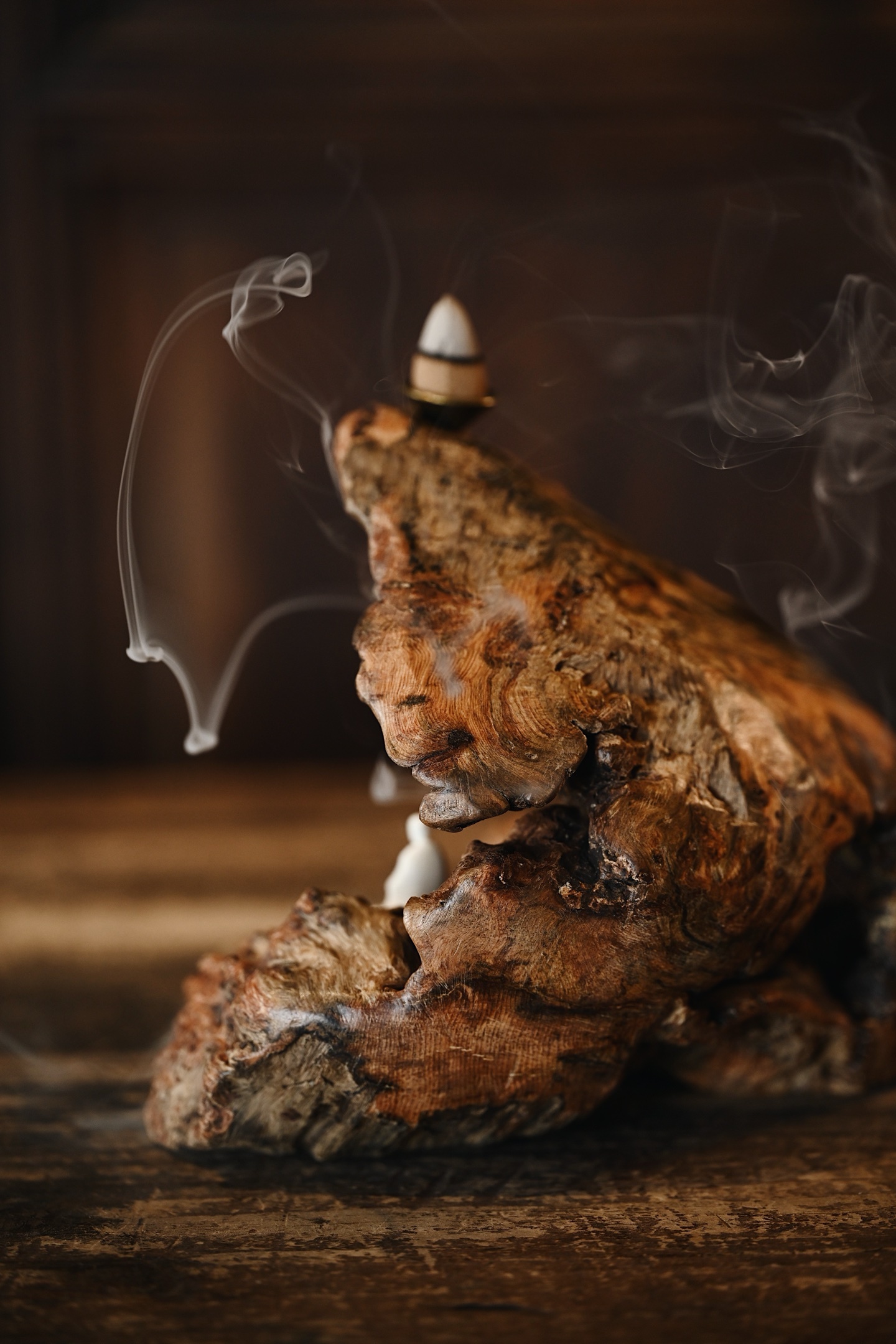 风化料沧桑有味,纹理生动细腻,采用倒流香设计,焚香香雾下沉飘渺,气韵侘寂空灵,饱含无限禅意。