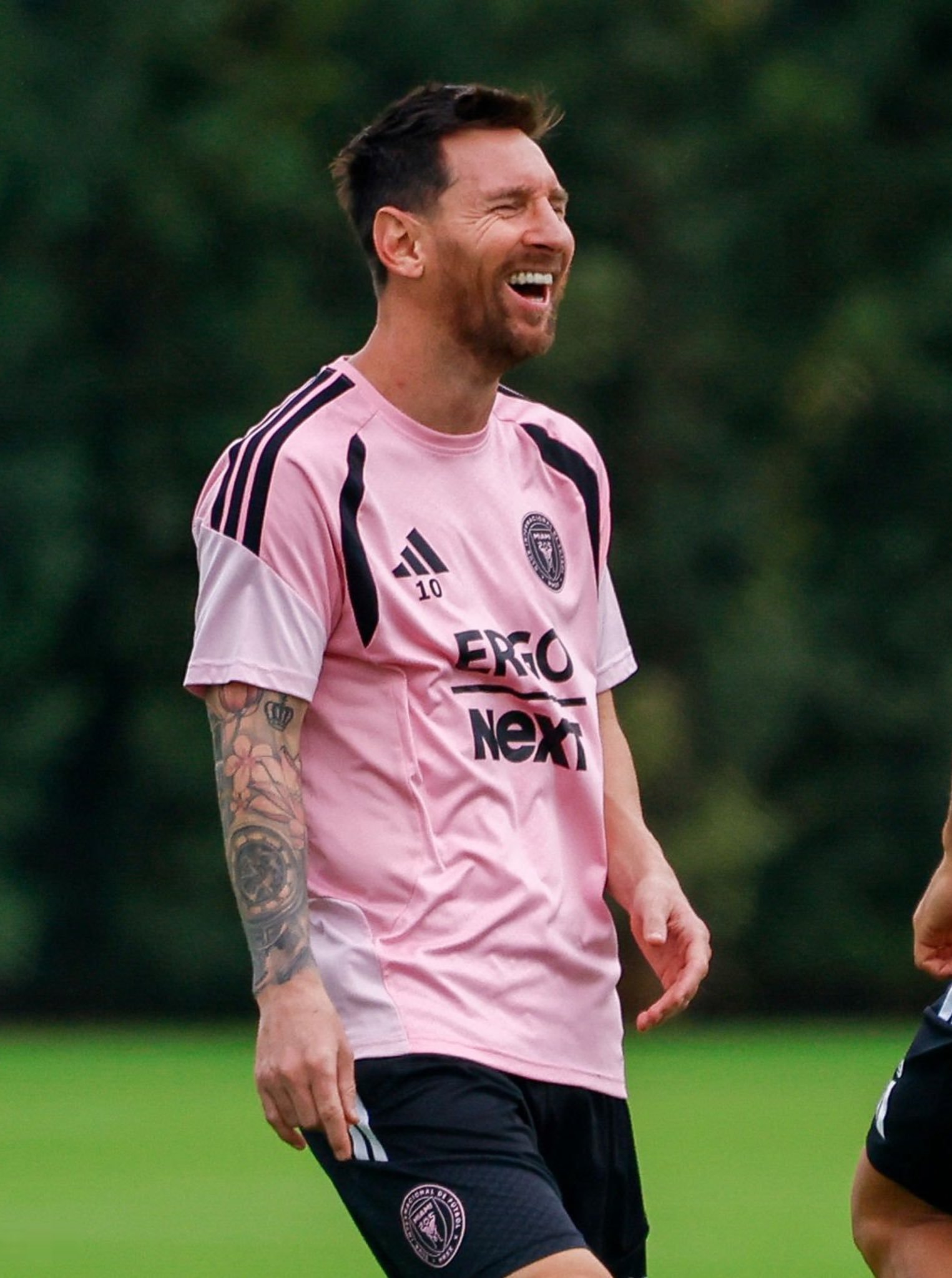 今天训练的梅梅大笑😆梅西