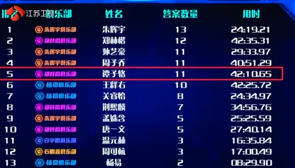 谭子辂太可惜了,作为这届最强大脑年龄最小的选手,在最后的优化赛中他和孙艺豪、周子乔同样都找到了11种解法,但是他以一秒之差惜败周子乔,没有晋级。脑王白宇鹏也感叹说,谭子辂,我爱而不得的名将! 谭子辂作为一名高中生,《最强大脑第十三季》的新选手,他在和一帮大学生和老师的比赛中完全不落下风,甚至有几次比赛还取得了非常好的成绩。就像之前“五轮脸谱”的挑战中他就是首先完成挑战的。 这名小选手也一直是各大主理人在自由猎场争抢的选手,白宇鹏就曾邀请谭子辂的加盟被拒绝。 所以最后谭子辂所在的郑林楷俱乐部全员进入优化赛的时候,看到谭子辂后劲十足,来到了前几名,白宇鹏还非常有信心的说,谭子辂我爱而不得的名将,终将会来到我的麾下。 但是很可惜,参与优化赛的14名选手中,只有4名优胜者,谭子辂和第三名的孙艺豪、第四名的周子乔都找出了11个答案,但是他在时间上慢了周子乔一秒钟,遗憾被淘汰!
