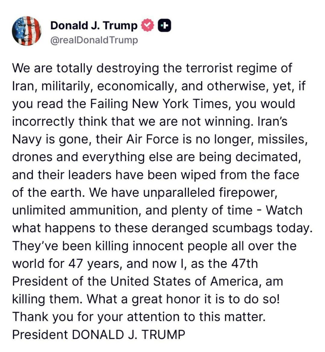 3月13日26,💥美国总统川普 :“失败的纽约时报认为我们没有取得胜利。”