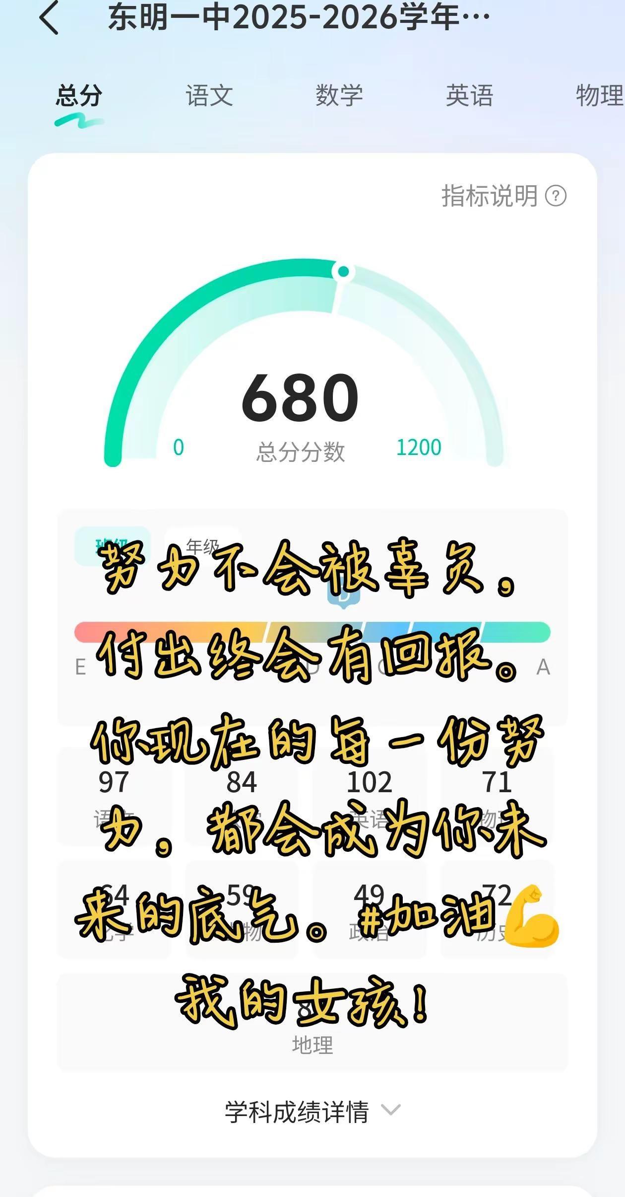 努力不会被辜负,付出终会有回报。你现在的每一份努力,都会成为你未来的底气。加油你是最棒的