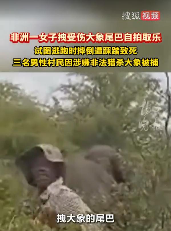 非洲纳米比亚,一头成年公象惨遭3名男子枪杀,在公象倒下后,一名女子上前拉扯公象的尾巴并自拍,不料公象却没有死,它在临死之前把女子吓得摔倒,强撑起受伤之躯将女子踩踏致死。 纳米比亚的奥穆萨蒂区,是草原和村落交界的地方,野生大象经常会跑到附近的谷地找吃的,当地村民早就见怪不怪了。   按说见得多了,大家应该知道和这些大家伙保持距离,可偏偏就有人不当回事,最后落得个两败俱伤的下场。   事情发生在3月4号,一头成年公象饿了,循着庄稼和野草的味道,走进了当地的谷地,刚到没有多久,就被三个村民给发现了。   这三个人没有想着把大象赶走,也没有联系当地的自然保护部门,反而拿出了私自藏的枪,对着大象就开了火。   大象那么大的体型,挨了子弹也扛不住,没一会儿就晃了晃身子,重重地倒在了田里,一动也不动了。   三个村民看大象没了动静,就认为它已经死了,等到第二天早上,大象倒地的消息就传遍了整个村子。   村里不少人都觉得新鲜,纷纷跑到田里去围观。   到了现场,大家围着倒地的大象指指点点,有人说这大象真大,有人伸手去摸它的皮肤,还有人觉得好玩,开始拽它的尾巴。   现场气氛越来越随意,没人觉得这是一头受伤的野生动物,反而都把它当成了一个稀奇的摆设,用来取乐。   其中有一名46岁的女子,也跟着凑了热闹,她走到大象的尾巴后面,用力拽住,还特意转过身,背对着大象,摆好姿势,想要拍下视频纪念。   可就在她摆好姿势的那一刻,意外发生了,原本安安静静躺在地上的大象,突然发出了一声低沉的哼声,紧接着,它用尽全身的力气,慢慢撑起了伤痕累累的身体。   现场的人瞬间就慌了,刚才还嬉笑打闹的场面,一下子变得混乱起来,大家吓得四散奔逃,生怕被大象伤到。   那名拽着大象尾巴的女子,更是吓得魂都没了,下意识地就想跑,可因为太紧张,脚下一滑,重重地摔在了地上。   她想爬起来,可已经来不及了,重伤的大象,一步步走到她的身边,抬起脚,重重地踩了下去,女子当场就没了呼吸。   而那头大象,做完这一次反击,也彻底耗尽了所有力气,再次倒在了地上,再也没能站起来,气息也越来越微弱。   有人赶紧报了警,当地的自然保护部门也很快赶到了现场。   工作人员仔细检查了大象的伤势之后,工作人员最终决定对它实施安乐死,让它体面地离开。   除此之外,当初开枪猎杀大象的那三名男性村民,也被警方当场控制住,依法逮捕了。   纳米比亚对野生动物的保护看得很重,有专门的法律来保护野生大象,非法猎杀本来就是犯法的,这三个人,终究要为自己的行为付出代价。   这起悲剧真的很让人唏嘘,大象本来只是想找口吃的,却被人无端枪击,女子本来只是凑个热闹,却因为自己的轻率,丢了性命。   说到底,还是大家对野生动物缺乏敬畏之心,也忘了最基本的安全常识。   野生动物不是我们取乐的工具,哪怕它看起来没有威胁,哪怕它身受重伤,也依然有自己的防御本能,一旦被惊扰,就可能发起反击。   我们和野生动物,本来就该各安其位,共享这片土地。   遇到受伤的野生动物,最正确的做法,就是远远躲开,然后联系专业的人来处理,而不是聚集围观、动手戏弄。   这起一人一象的惨剧,就是最真实的教训,它提醒我们,尊重野生动物,保持安全距离,不仅是保护它们,更是保护我们自己。