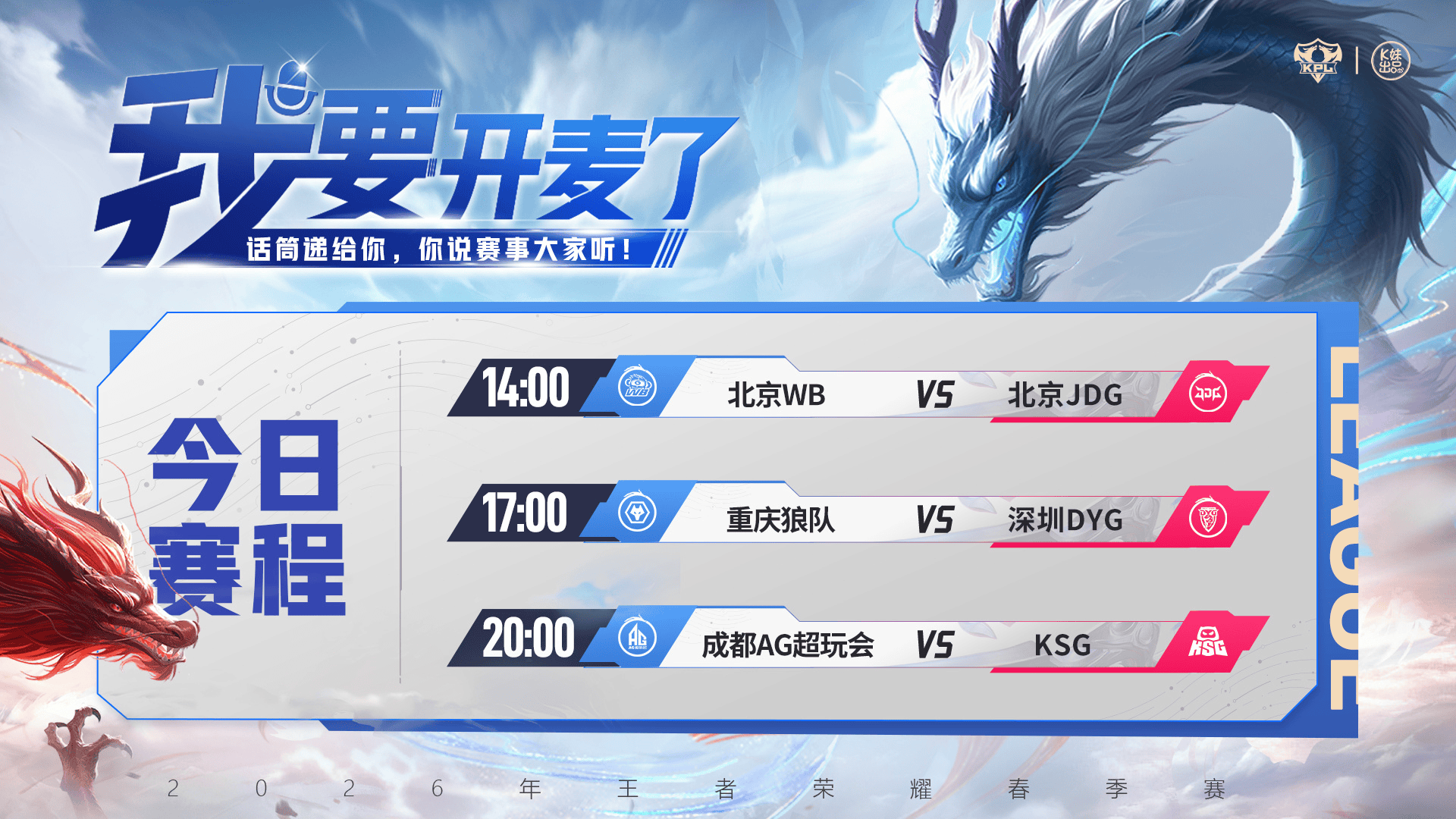 2026KPL春季赛常规赛第三轮W2D4[首发名单]送达!