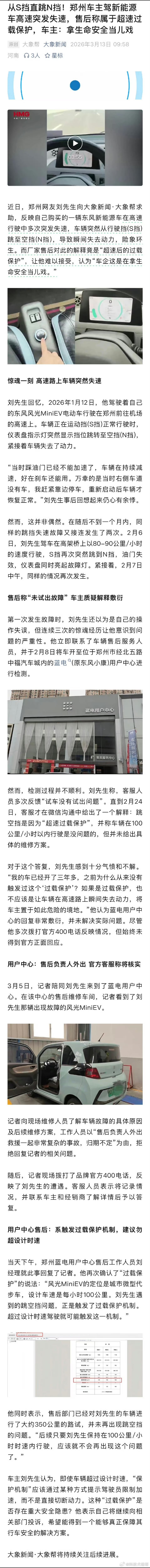 新能源车高速连跳3次空挡瞬间失速