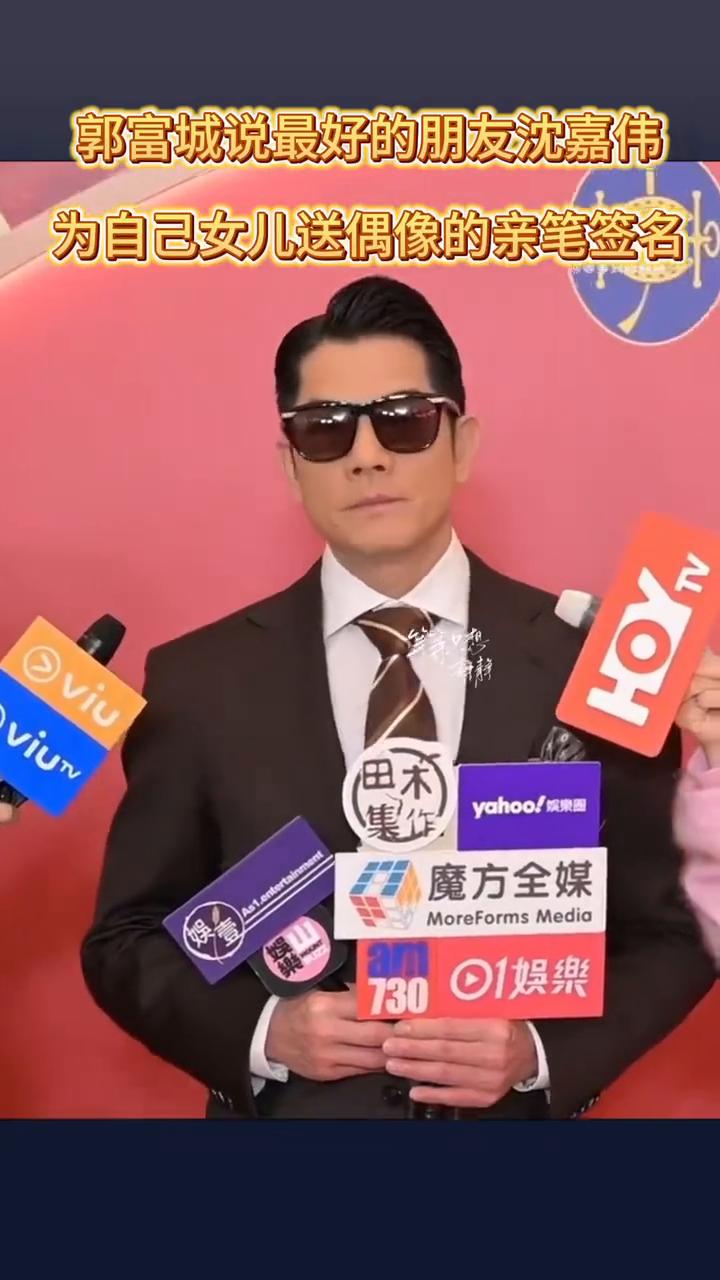 郭富城说最好的朋友沈嘉伟为自己女儿送偶像的亲笔签名。 我best friend,