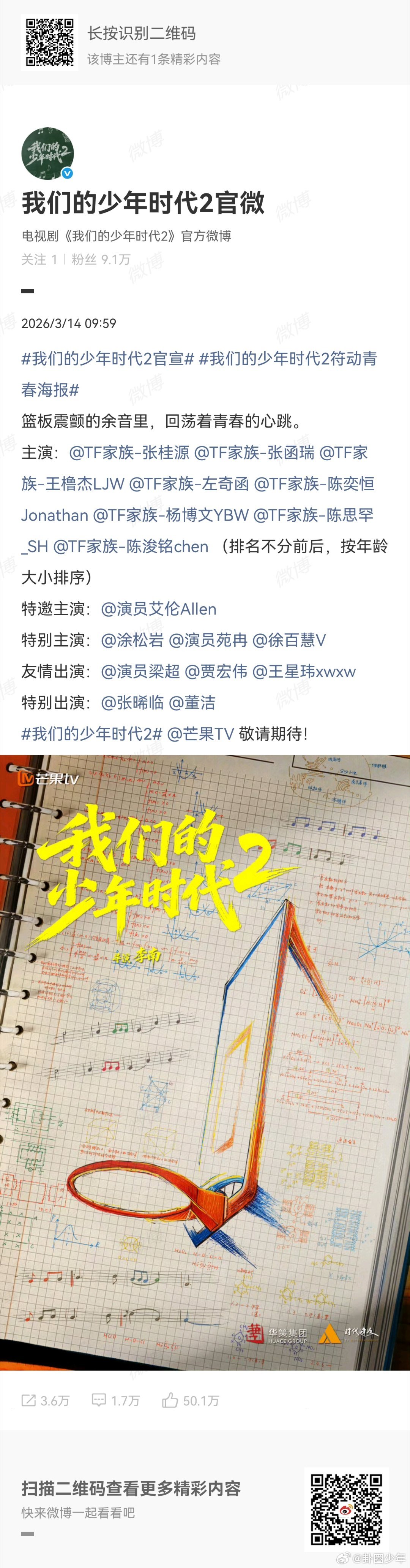 TF四代我们的少年时代2海报TF四代我们的少年时代2阵容我们的少年时代2阵容正式公布,TF家族四代成员集结亮相,少年感满满,静待精彩表现