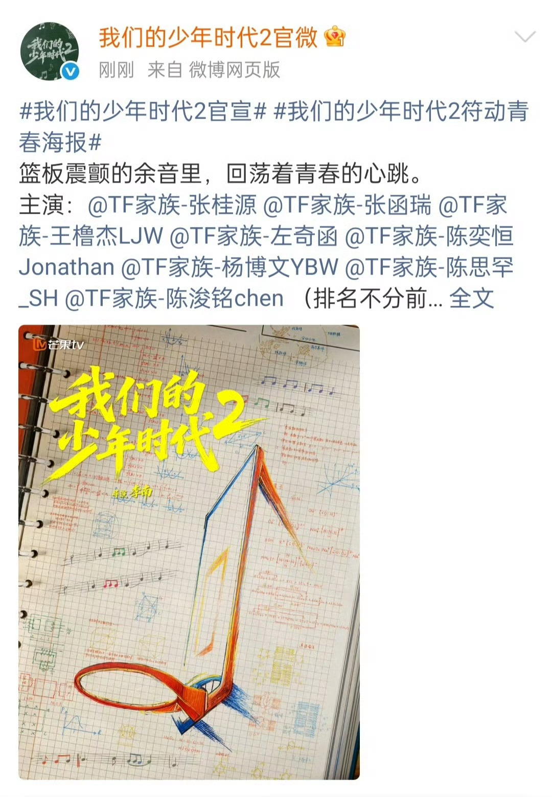 TF四代新剧《我们的少年时代2》官宣张桂源、张函瑞、王橹杰、左奇函、陈奕恒、杨博文、陈思罕、陈浚铭