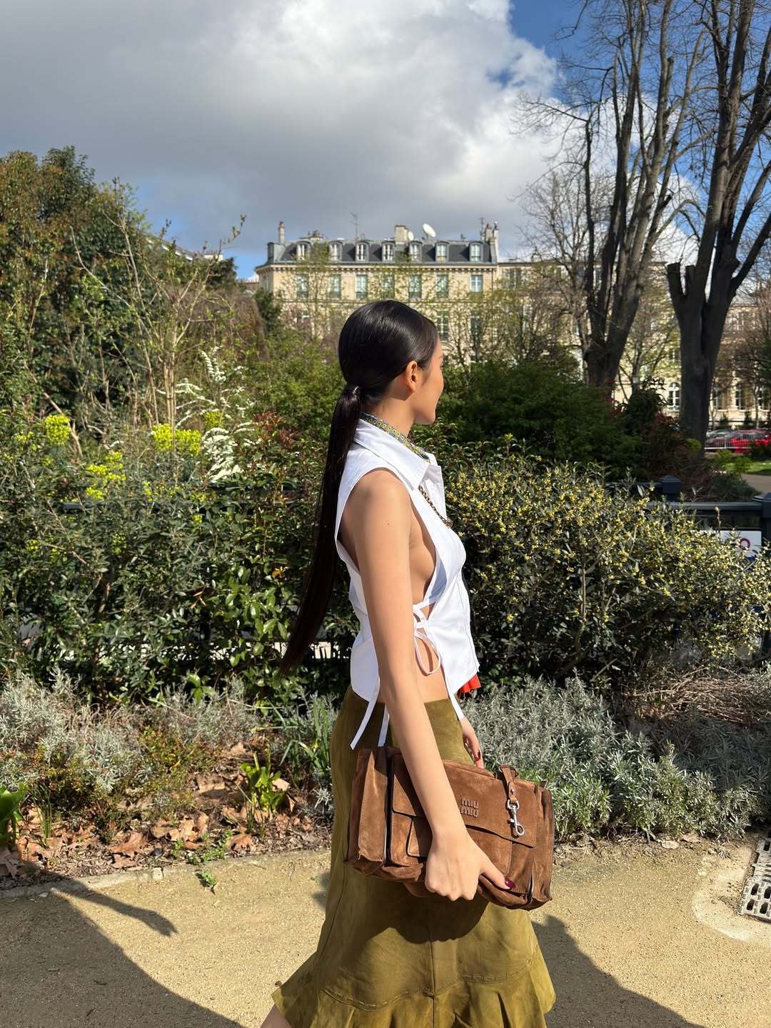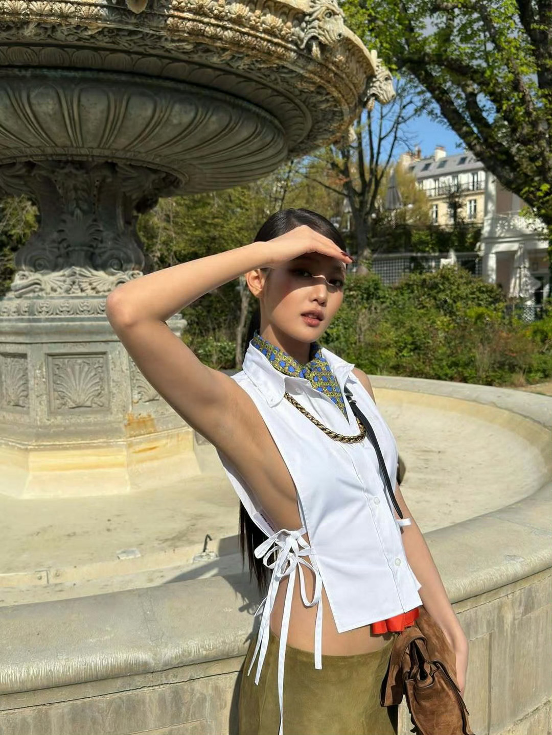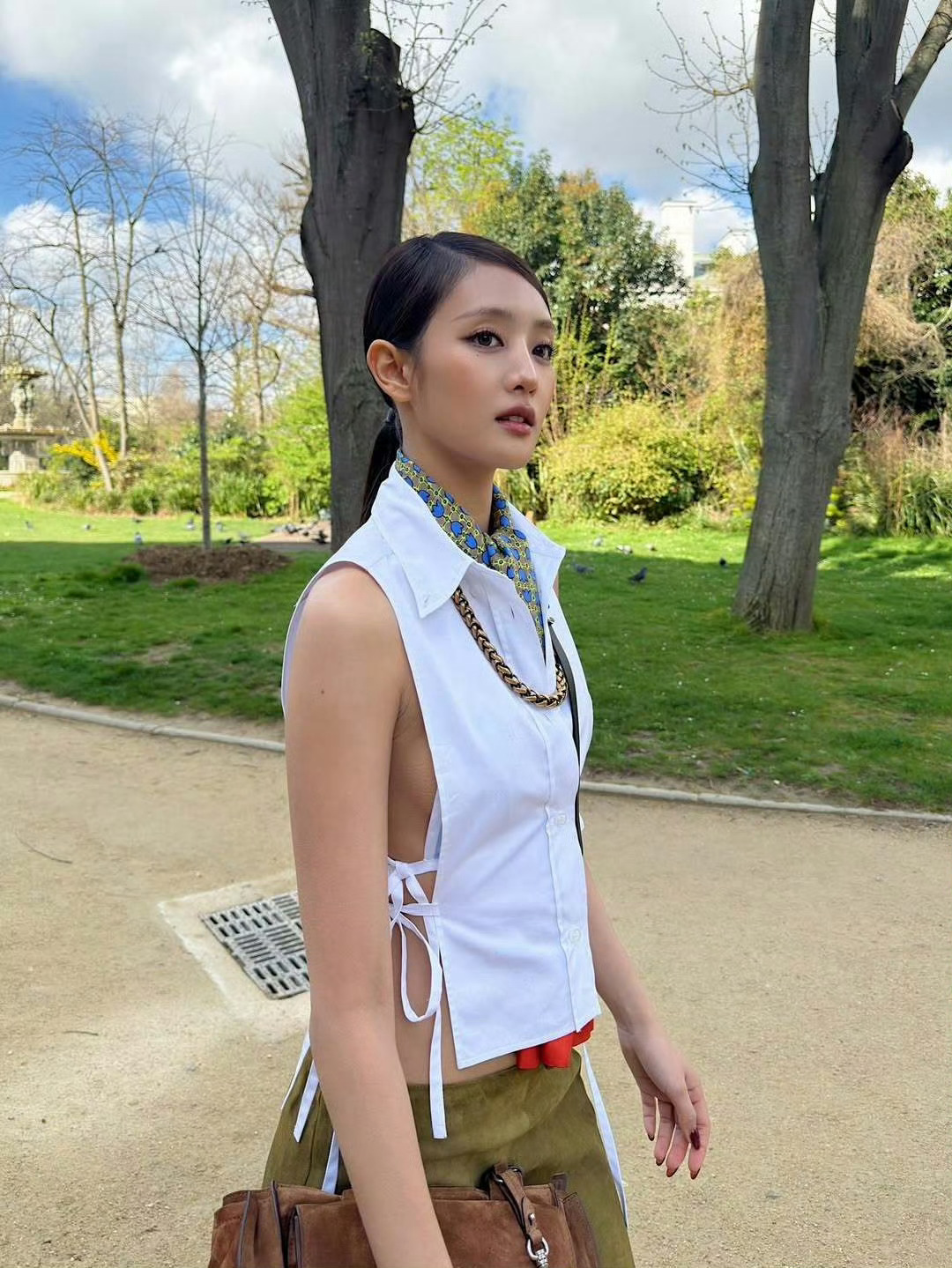 出席MiuMiu2026秋冬发布秀女的EllaGross,身穿了一件清爽
