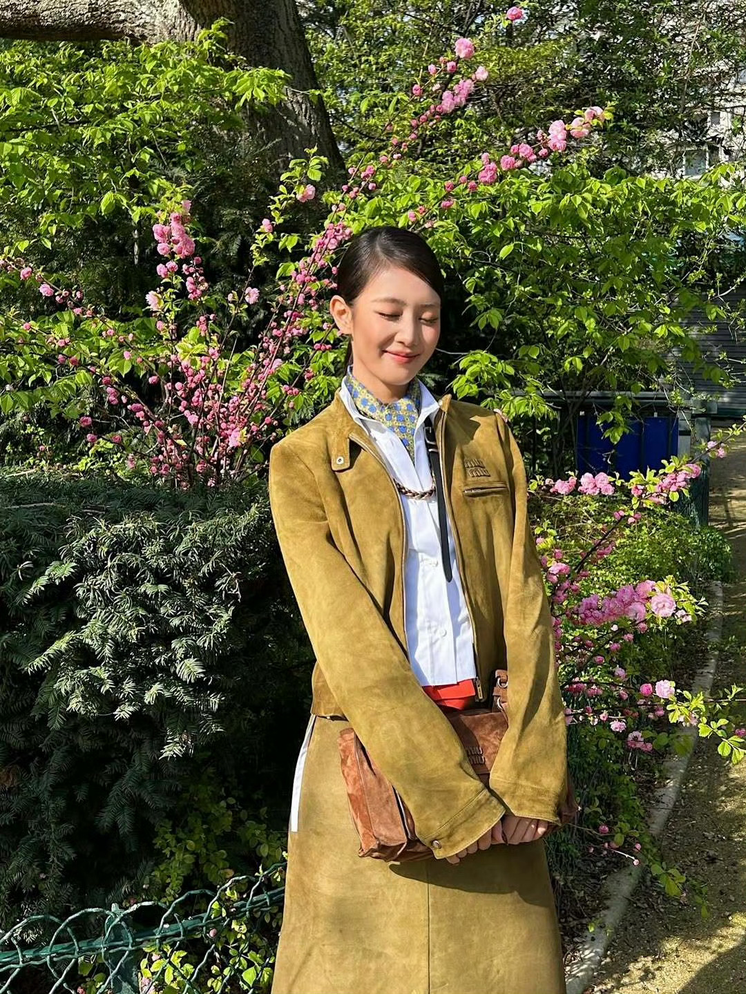 田曦薇穿Gucci新款,反倒笑得不自在了?那件2024秋冬系列的芥末黄羊毛