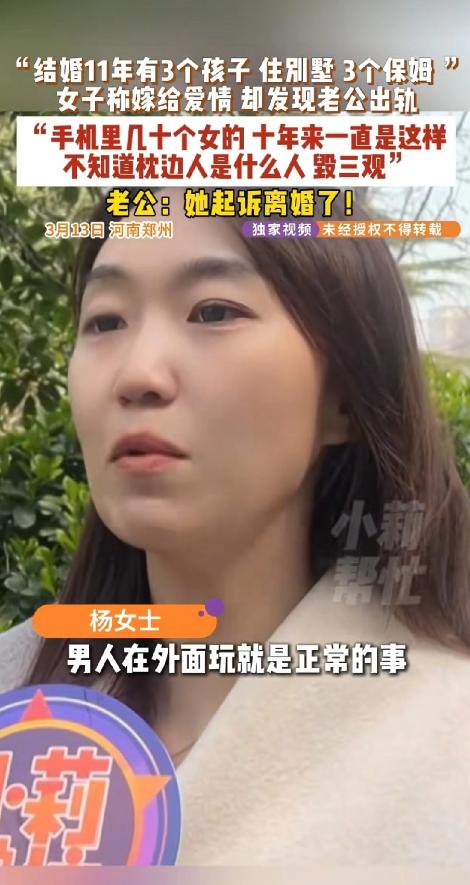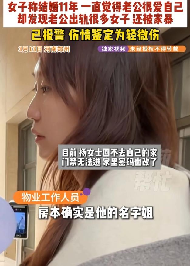 太毁三观!河南郑州,干练、漂亮的杨女士求助电视台,说自己的老公不仅出轨还家暴,现在他又把房子的密码给换了,害的她有家不能回。 这是怎么回事呢? 河南郑州的街头,一位身姿挺拔、气质干练的女子,攥着手机站在一栋别墅门前,眉头紧锁,眼底满是红血丝。 她就是杨女士,此刻的她,没有了往日的从容漂亮,只剩下满心的无助与愤懑——她不是来找人,而是想回到自己住了十几年的家,可门锁密码早已被丈夫换掉,她和孩子,成了这栋别墅的“外人”。 走投无路之下,她只能拨通电视台的求助电话,诉说自己被出轨、被家暴,最终有家难回的悲惨遭遇。 杨女士与丈夫的缘分,始于海外留学的时光。 彼时两人意气风发,相互欣赏,毕业后便携手组建家庭,这一过,就是十一个春秋。 十一年里,杨女士从未有过丝毫懈怠,在事业上,她凭借自己的能力,带领销售团队创下累计两个多亿的业绩,成为家里的经济支柱之一;在家庭中,她悉心照料三个孩子,孝顺双方老人,将家里打理得井井有条,即便家境优渥,雇了三个保姆,她也从没有过一丝松懈。 在外人眼中,杨女士无疑是人生赢家——住别墅、家境优渥,事业有成、家庭和睦,三个孩子乖巧可爱,这样的生活,是很多人梦寐以求的。 可这份看似圆满的生活,背后却藏着杨女士从未与人言说的委屈。 她一直以为,自己的付出能换来丈夫的真心相待,却没想到,自己坚守的婚姻,早已被丈夫的背叛碾得粉碎。 去年,一次整理丈夫物品时,杨女士意外发现了一部陌生的手机。 这部手机里没有家人的联系方式,只有几十个陌生女性的号码,聊天记录暧昧不堪,显然是丈夫专门用来维系婚外关系的工具。 更让她崩溃的是,在和丈夫的家人、公司下属不经意的交谈中,她才得知,丈夫出轨的事情,早已是人尽皆知的秘密,只有她一个人,被蒙在鼓里,傻傻地守护着这段早已变质的感情。 得知真相的杨女士,没有哭闹,而是冷静地找到丈夫对质。 可让她心寒的是,丈夫没有丝毫愧疚,反而一脸理所当然地表示,男人在外逢场作戏很正常,只要不影响家庭大局,没必要小题大做。 这种无视婚姻忠诚、践踏她付出的态度,彻底点燃了杨女士的怒火。 争吵随之爆发,杨女士据理力争,诉说自己多年的付出与委屈,可丈夫不仅不听,反而对她动了手。 他狠狠扇了杨女士耳光,甚至将她按在地上殴打,最后更是残忍地将她推下楼梯。 万幸的是,正在一旁的女儿见状,急忙拨打了120,才让杨女士得以脱离危险,否则后果不堪设想。 即便遭遇了如此恶劣的家暴,看着三个年幼的孩子,杨女士还是选择了妥协。 她不想让孩子们在破碎的家庭中长大,也还抱着一丝侥幸,希望丈夫能看清自己的错误,回归家庭。 家暴发生后,她带着女儿暂时搬到了外面,想着等双方冷静一段时间,再好好沟通解决问题。 可她的包容与退让,换来的却是丈夫的得寸进尺。 仅仅几天时间,当她带着女儿满心期待地回到别墅,准备和丈夫好好谈谈时,却发现无论怎么输入密码,都无法打开家门。 她瞬间明白,丈夫是故意换掉了密码,就是要将她和孩子彻底拒之门外,斩断她所有的念想。 多次联系丈夫无果,杨女士彻底走投无路,只能求助电视台。 记者赶到现场后,陪着杨女士反复尝试输入密码,确认门锁密码确实被更换。 随后,记者陪同杨女士拨通了丈夫的电话,电话那头的声音冷漠又敷衍,不仅否认自己更换了密码,对出轨、家暴的事情也绝口不提,只丢下一句“已经起诉法院,等判决就好”,便匆匆挂断了电话。 说实话,听到这样的遭遇,没人能做到无动于衷。 杨女士足够优秀、足够付出,却在婚姻里遭遇了最残忍的背叛和伤害,而丈夫的冷漠与绝情,更让人不齿。 杨女士的遭遇,也给所有女性提了个醒,面对不公与伤害,不必一味隐忍,唯有勇敢站出来,才能保护好自己和身边的人。