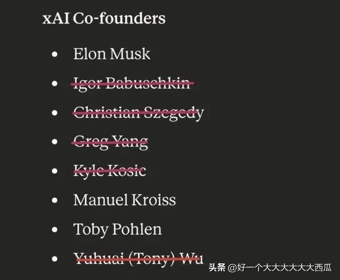 强如马斯克这样的世界首富, 依然每天会面临各种各样的困扰, 依然在公司经营中会面临众叛亲离的情况。 这两天新闻报导马斯克的xAI将启动新一轮裁员, 而且xAI的11位联合创始人走得只剩两人了。 自从马斯克用SpaceX以1.25万亿美元估值收购xAI后, xAI内部就麻烦不断, 显然马斯克旗下这家公司内部出现了争权夺利的情况, 马斯克这个“皇帝”要平衡下面各位“大臣”的权利和欲望, 还真得好好的思考思考, 毕竟这群人没有一个是省油的灯。