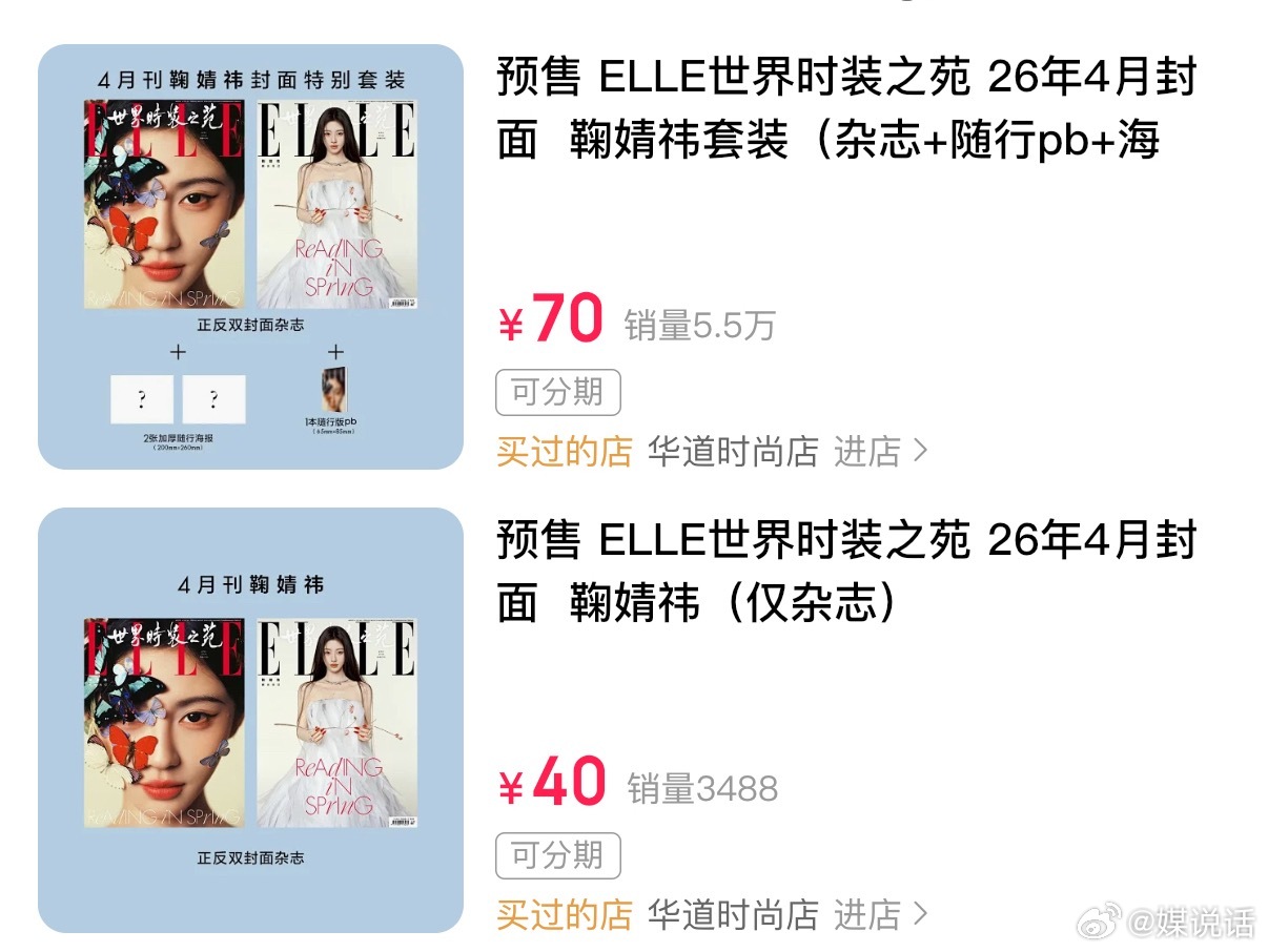 鞠婧祎杂志开售 鞠婧祎五大《ELLE》4月刊开售50分钟,目前销售额660多万,