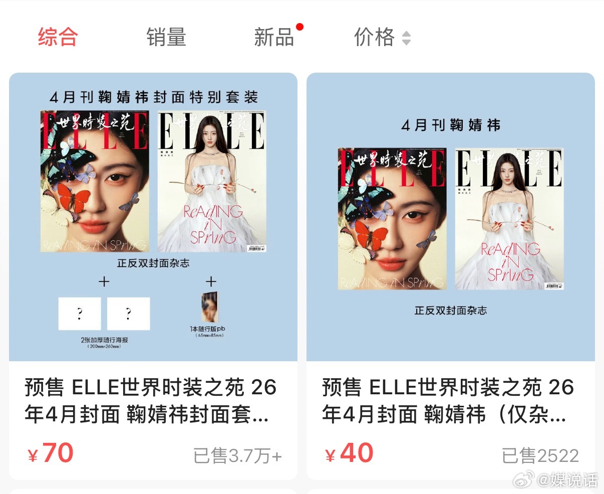 鞠婧祎杂志开售 鞠婧祎五大《ELLE》4月刊开售50分钟,目前销售额660多万,作为内娱女艺人杂志销售额冠军,这次散切你觉得能有多少?