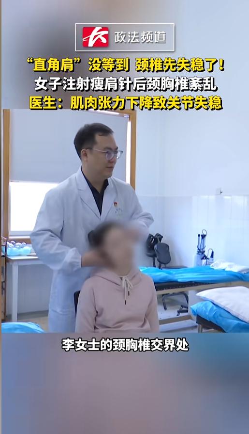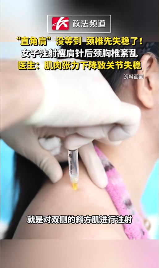 “又是医美惹的祸!”近日,湖南长沙,一年轻女子注射完瘦肩针后不久,肩部像针扎的一样疼,于是到医院就诊。检查中医生发现,女子本身就比较瘦削,打完瘦肩针后,肌肉进一步萎缩,造成了她颈胸椎交接处小关节的紊乱。网友:先评估再医美! 近些年来,直角肩、A4腰等受到了大众的追捧,尤其是一些年轻的女孩子,更是趋之若鹜,练不出来,就去打药动刀子。过度的追求这些,反而会给身体带来负担。 据媒体3月12日报道,该女子为了追求“直角肩”,就找了家医美机构,打了瘦肩针,打之前也没有进行健康评估,忽视了自己本来就很瘦的客观事实。 打完瘦肩针一周后,女子感觉不对劲,自己的肩部一直疼,像针扎的一样。于是她去了医院检查。 检查发现,女子的颈胸椎交界处的小关节,出现了轻微紊乱,导致了女子现在的症状。紊乱的原因,就是女子打的瘦肩针,它让本就瘦削的肌肉雪上加霜,失去了保护骨头的作用,造成了关节错位。 医生说,瘦肩针是肉毒素的医美应用,但是它本身的适用症里面,是没有瘦肩的,这是一种超说明书用药,本身就带有风险。 每个人的身体条件都不一样,做医美之前一定要进行一个健康检测,来判断自己适不适合做这一项!一定不要盲目,不要冲动! 信息来源:《“直角肩”没等到,颈椎先失稳了!女子注射瘦肩针后颈胸椎紊乱,医生:肌肉张力下降致关节失稳