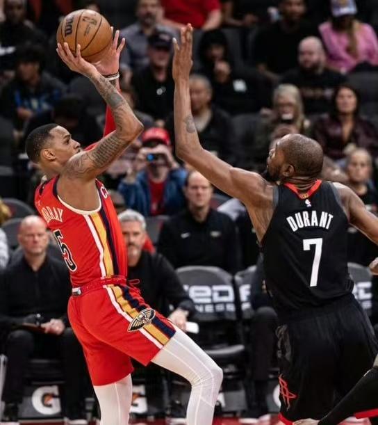 杜兰特绝杀鹈鹕,这一战诞生三大事实 随着穆雷的复出,与锡安、墨菲组成三核驱动,鹈鹕已非昔日阿蒙,面对西部第四的火箭,鹈鹕丝毫不虚大战至最后时刻险些完成逆转,奈何杜兰特立棍单打中距离准绝杀比赛。 火箭107-105险胜鹈鹕,一战诞生三大事实: 一、锡安10中7高效21分5篮板2抢断,健康的的胖虎依旧厉害,可贵的是本场穆雷手感好,胖虎主动让出球权; 二、穆雷自复出以来鹈鹕战绩显著提升,本场打出统治级的表现18中14三分球5中4狂轰35分7篮板4助攻,正负值高达+19; 三、但鹈鹕本场是成也二人,败也二人;关键时刻穆雷踩线,锡安发边线球失误痛失好局; 四、最后火箭还得靠杜兰特全场32分6篮板5助攻+致胜反超中距离,死神镰刀今晚再次挥舞。
