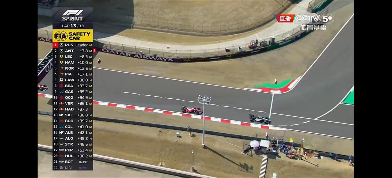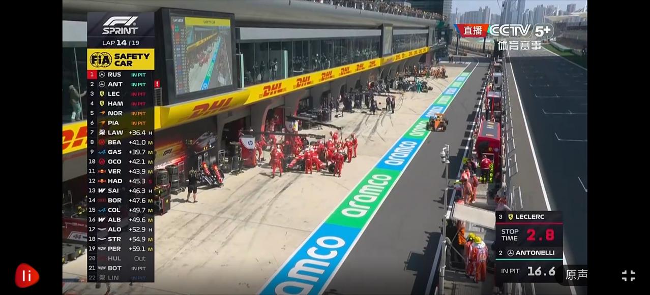 安全车出动,真的救了法拉利!汉密尔顿乐扣双车进站。林德布拉德、博塔斯、霍肯伯格退