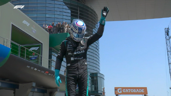 安全车出动,真的救了法拉利!汉密尔顿乐扣双车进站。林德布拉德、博塔斯、霍肯伯格退