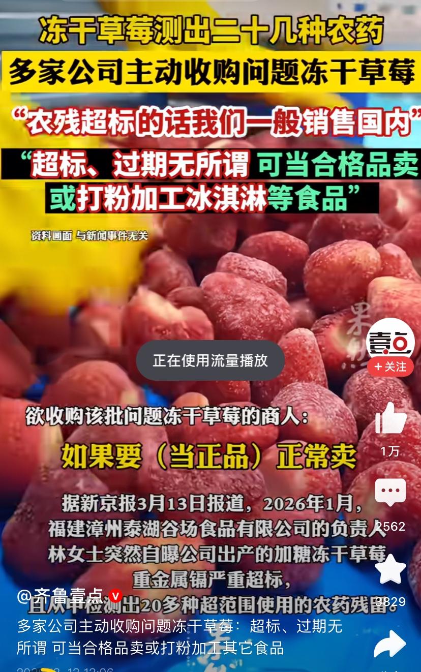 草莓🍓种植户自掘坟墓,把整个行业害惨了 春暖花开大量草莓上市,很多人喜欢吃草莓,特别一些孩子把它当零食吃。最近有媒体曝光某地草莓种植户滥用农药,被检测出用了二十多种农药,自己都不吃,为了利益不顾消费者的健康。 有些草莓被冻干卖给商家,商家把明知有问题的草莓买给国内消费者,坑害同胞。 这些触目可见的问题当地的工商食品安全等部门发现不到吗?