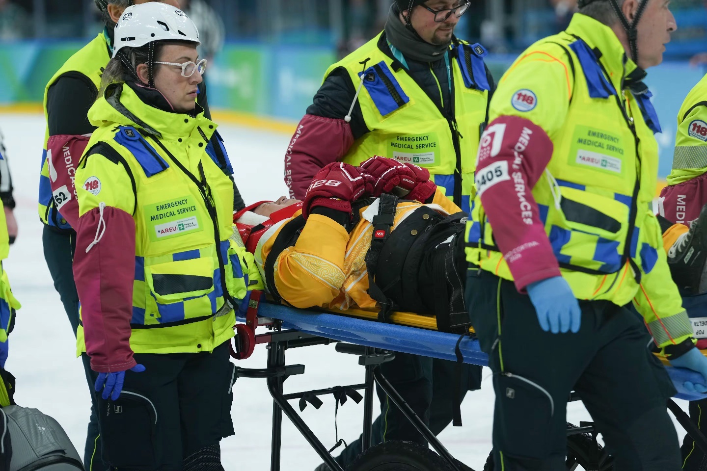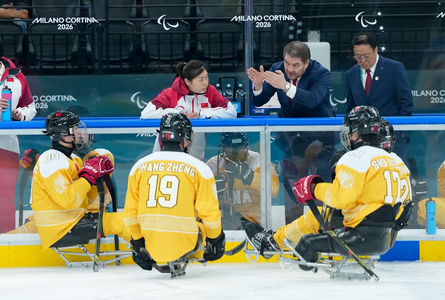 当地时间3月13日,在意大利米兰举行的米兰-科尔蒂纳冬残奥会残奥冰球半决赛中,中