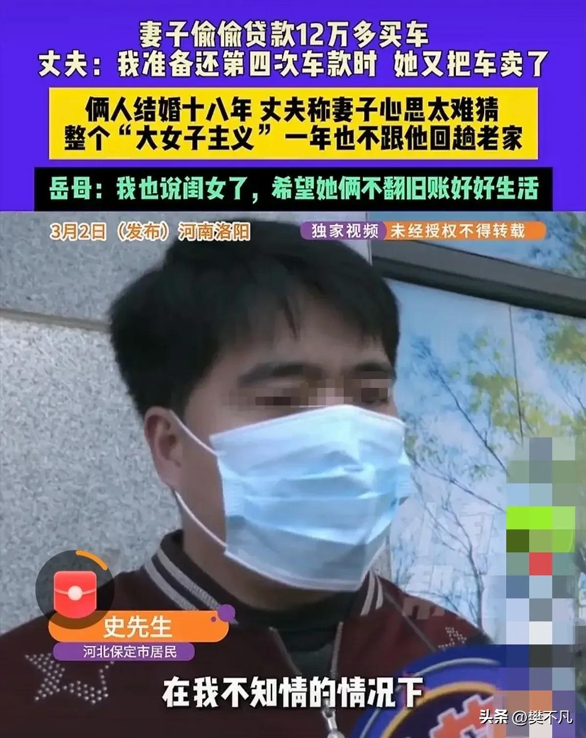 妻子瞒着丈夫网贷12万买车,还不上了让他还,快还完时又发生一件让他更意外的事。 史先生是河北人,48岁,2008年为了爱情,放弃老家,跟着妻子到河南洛阳生活。 一住就是18年。但是没有人知道他在这18年里过的是什么日子。 妻子强势,一言不合就拉黑微信、拉黑电话。他想回河北看看父母,刚开口,妻子当场发飙,直接把他气到心脏病发作。18年,他一次都没能带妻儿回老家。 可他忍了,想着为了孩子,忍一忍就过去了。 结果呢? 2019年,妻子给了他第一记重拳。 那天史先生在工地干活,突然接到催债电话。 他一脸懵:我没借钱啊? 对方说:你老婆借的,留的你电话。 史先生这才知道,妻子瞒着他在网贷平台借了12万,买了辆车。现在还不上了,才告诉他。 而且不是商量,是通知“你来还”。 史先生气得不行,但催债电话天天打,他实在扛不住。 念着18年夫妻情分,念着孩子,他咬牙扛下了这笔债。 为了还钱,他鞋子破了舍不得换,饭都舍不得吃好的,每天过得抠抠搜搜。 他就想着:赶紧还完,日子就能回到正轨。 史先生省吃俭用,还到第三期。 第四期还没还,妻子发来一条微信:“别还了,车卖了。” 没有商量,没有告知。卖了多少钱、卖给谁、钱去哪了,史先生一概不知。 他当时就懵了。 自己省吃俭用还了这么久,结果妻子直接把车卖了,卖的钱他一分没见着。 他怀疑,这辆车从一开始就是妻子用来转移债务的工具。 18年的付出,18年的忍让,18年为爱远走他乡,在这一刻,全碎了。 事情闹大后,岳母出来说话了。 她也觉得女儿做得过分,劝了几句,但管不住。 最后只能劝史先生:别翻旧账了,为了孩子,好好过吧。 可史先生心里的那道坎,还能过得去吗? 他问自己:我到底做错了什么,要被这样对待? 这事曝光后,评论区炸了。 有人心疼史先生:“18年,连老家都不能回,这叫什么婚姻?” “鞋子破了舍不得换,她那边直接把车卖了,这男人太可怜了。” 有人质疑债务问题:“婚内网贷买车,丈夫该不该还?” “如果车卖了钱没给他,那他还的债算什么?” 更多人感慨: “强势不是问题,问题是自私。夫妻之间,连知情权都没有,还叫什么夫妻?” 这事还涉及几个法律问题。 第一,婚内网贷,算不算共同债务? 《民法典》规定:夫妻一方在婚姻关系存续期间以个人名义超出家庭日常生活需要所负的债务,不属于夫妻共同债务。 12万买车,显然超出了日常开销。如果史先生不知情、没签字、没追认,这笔钱他可以主张是妻子个人债务。 但他选择了还,这是他的善良,不是他的义务。 第二,妻子卖车,钱去哪了? 车是婚后买的,属于夫妻共同财产。妻子单方面卖掉,卖的钱也属于夫妻共同财产,史先生有权分一半。 但现在的问题是,他连卖了多少都不知道。 史先生这事,最让人难受的不是钱。 是他18年的付出,换来的是一次又一次的寒心。 不能回老家,忍了。 被拉黑,忍了。 被气到心脏病发作,忍了。 替她还12万,也忍了。 可当他以为债快还完、日子快好起来的时候,妻子又来了一句“车卖了”。 那一刻,他所有的忍耐,都成了笑话。 有人说他傻,18年早该离。 可我想说,一个为了爱情远走他乡的男人,心里装的全是这个家。他不是看不清,是不想看清。 但有些事,看清的那一天,就再也回不去了。 希望史先生这次,能为自己活一次。 18年,够了。 你怎么看这事?如果是你,会怎么做?评论区聊聊。