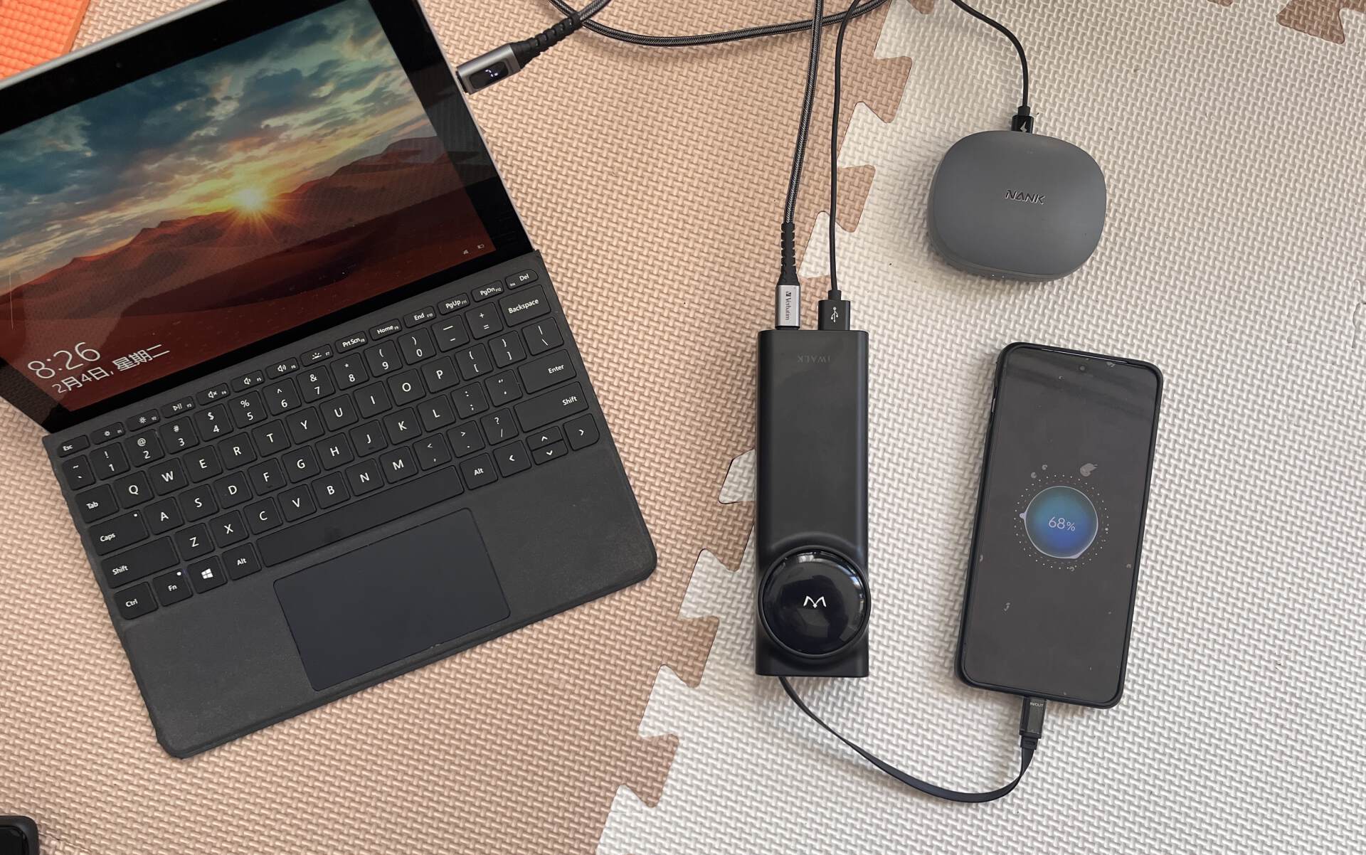 -测试了一下,可以30分钟为iPhone 16 充电至60%,满电可支持3.6次循环,彻底告别低电量恐慌。 另外它也支持MacBook、华为MateBook等主流笔记本65W满功率快充,办公、剪辑视频不断电。