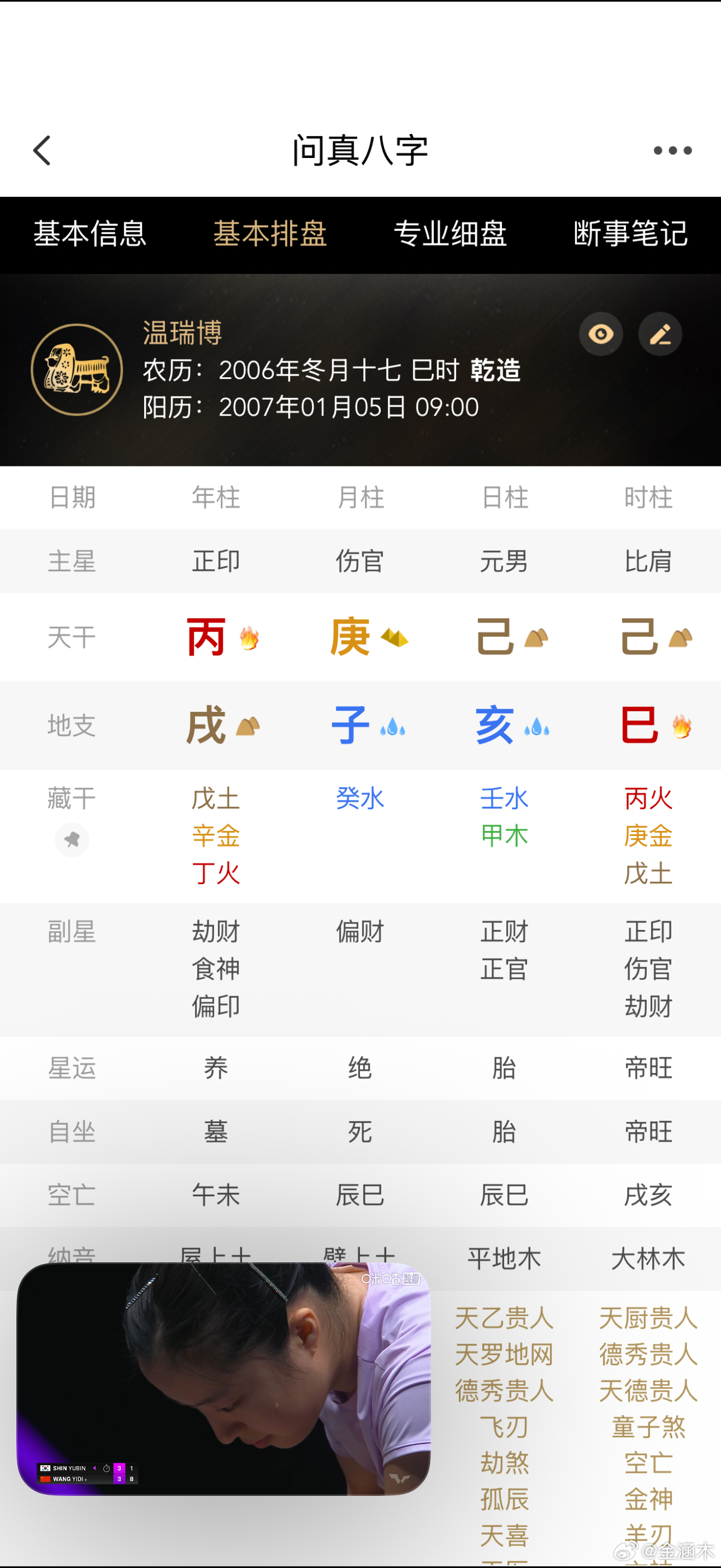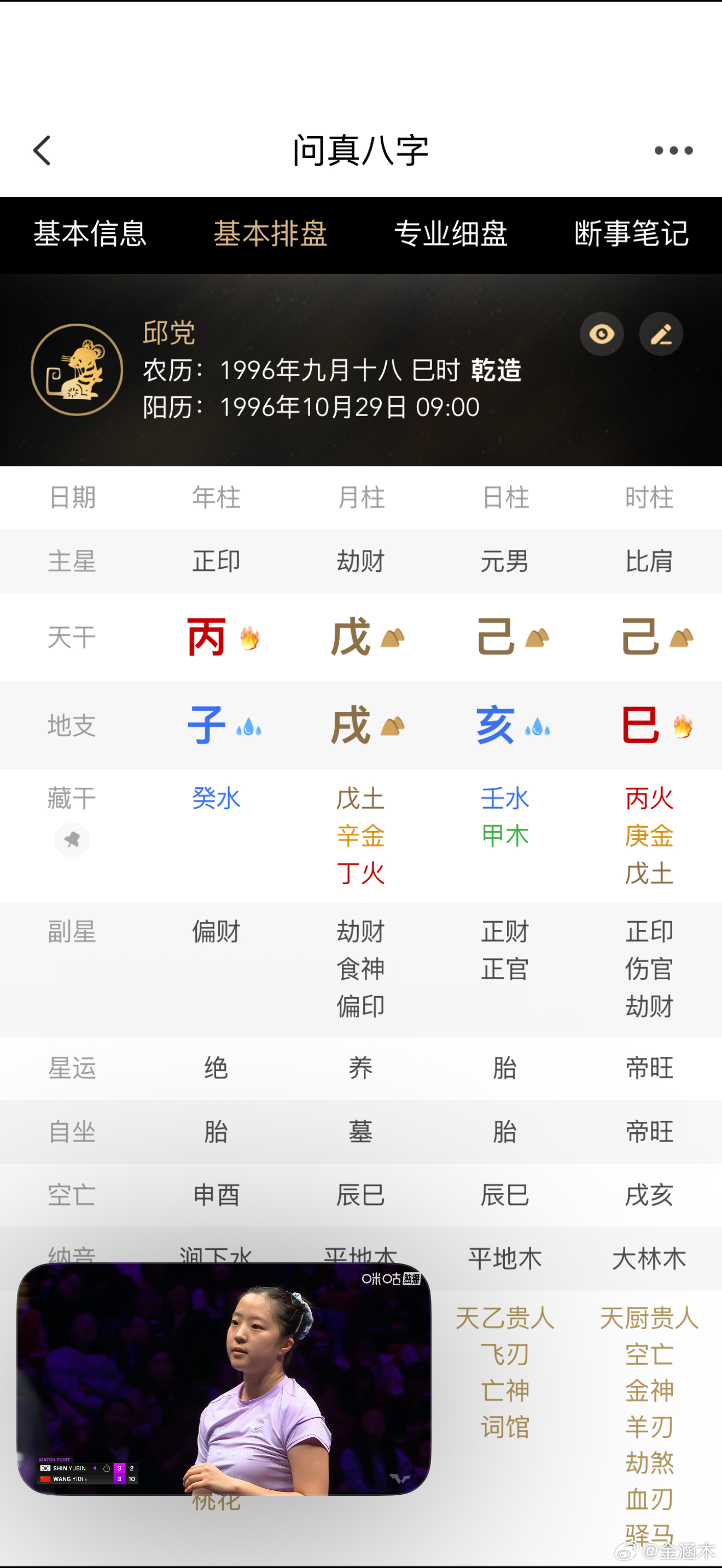 邱党跟温瑞博这场没办法看天时,因为都是己亥日柱,两个人是一样的己亥自坐财官地。