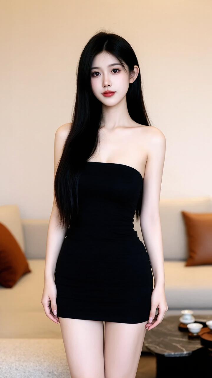 AI方领黑裙写真