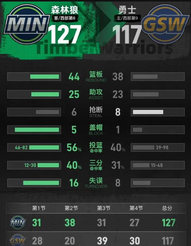 你看懂了吗?库里压根没上——那栏"1篮板1助攻"是他弟弟赛斯·库里的数据。38岁老库里穿着西装坐场边,膝盖上绑着冰袋,看着爱德华兹把勇士生吞活剥,这才是最诛心的画面。 华子今天42分不是砍分,是凌迟。戈贝尔挡拆顺下如入无人之境,18分9篮板全是吃饼吃到撑。勇士第二节直接断电,半场让人轰出个21分分差,防守端像集体喝了假酒——波尔津吉斯首秀首发20分4篮板够拼了,但双拳难敌四手,内线被戈贝尔+兰德尔+里德轮流凿穿。 波杰姆斯基25分10篮板是黑暗里唯一的光。第三节他独揽球队前10分,带队轰出39分追分潮,末节桑托斯连中三分一度追到差7分。但这光太微弱——华子两个干拔三分,直接掐灭反扑火苗。这是天赋碾压,更是阵容厚度的处刑。 霍福德3分1板伤退,赛斯·库里1板1助打卡,梅尔顿11中4打铁 symphony。勇士现在像台发动机被拆了核心、全靠二极管线在硬撑的老爷车。科尔战术板画满跑位,华子直接单防撕碎——他都不用叫战术,一个变相就杀到篮下。 四连败不可怕,可怕的是这球打得像真理预告——库里复出也救不了阵容断层,巴特勒躺平整个赛季,格林背伤反复。波杰姆斯基今天血C的表现反而验证了一个残酷事实:勇士的未来不在库里掌心,而在这二年级生的膝盖上。 输球认了,但光没灭——华子踩着你加冕西部新王,而你至少验出了谁真能扛旗。重建阵痛期,这25分10板是遮羞布,也是指南针。别摔遥控器了,收藏好这场录像,三年后你会看懂它的价值。爱德华兹42+7波杰姆斯基25+10 勇士负森林狼吞四连败