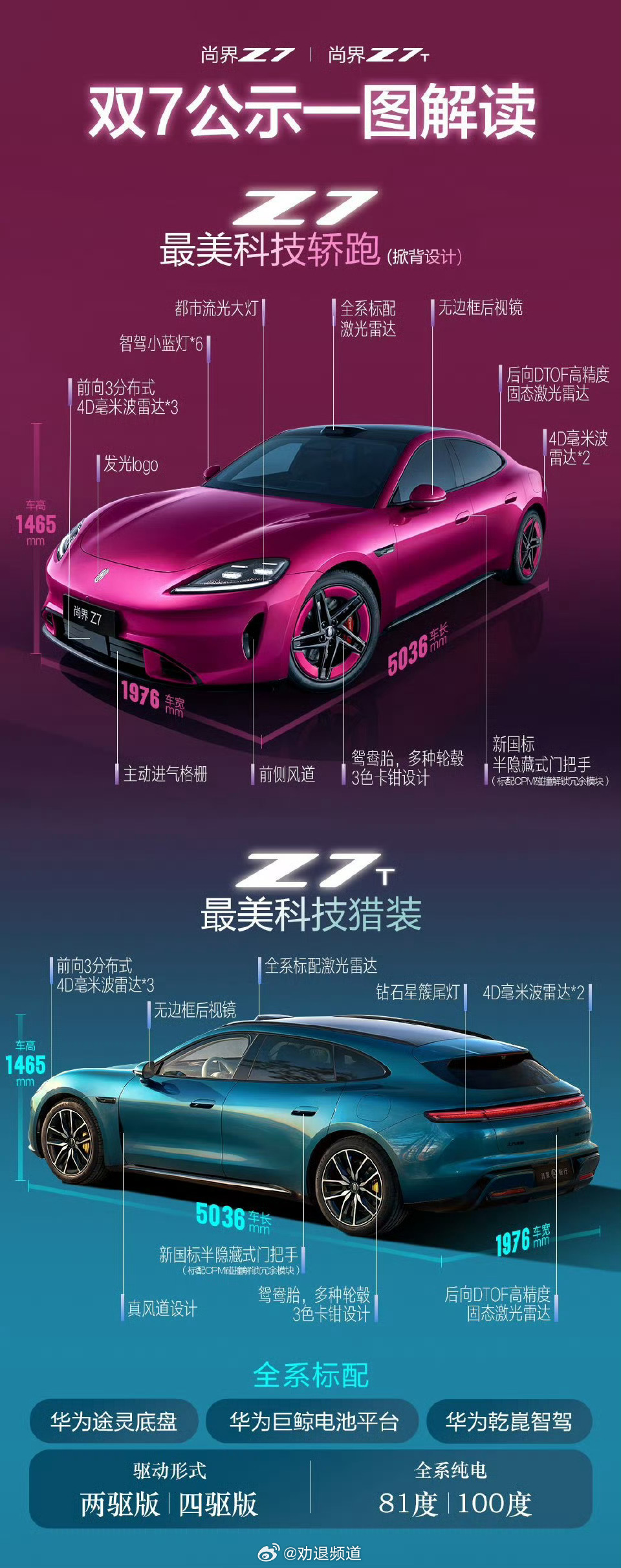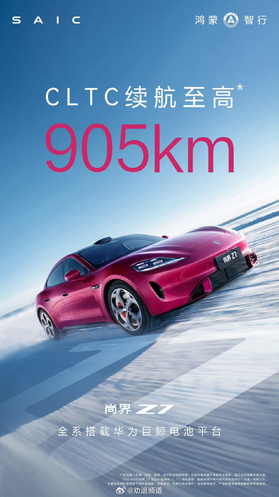 尚界Z7光看外观颜值,毫无疑问非常出色,没想到还是实力派。全系搭载华为巨鲸电池平台,可选81/100度大电池,最高905km的CLTC续航也是真的顶。这下还担心什么诗和远方到不了?余承东曝尚界Z7续航达905KM