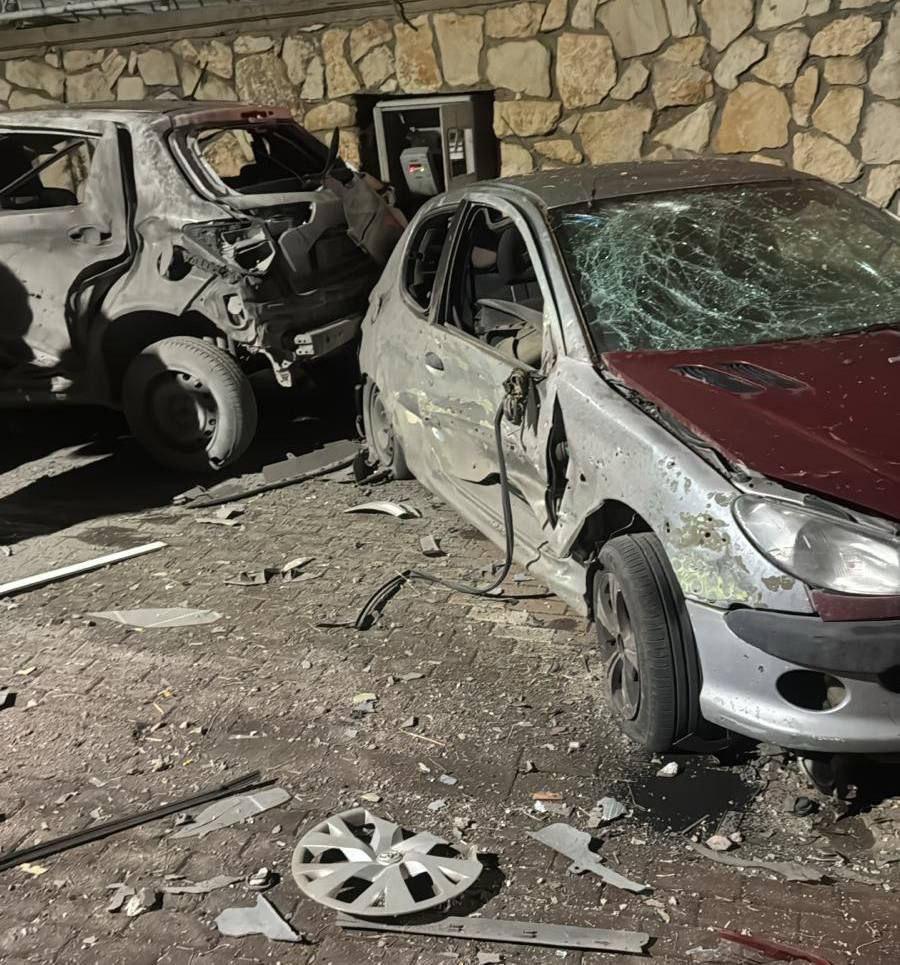 在真主党和伊朗联合炮击后,落下的火箭弹碎片损坏了巴勒斯坦北部被占领的上加利利地区定居者的车辆。