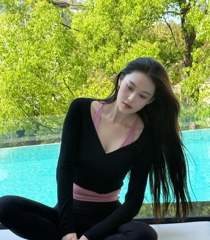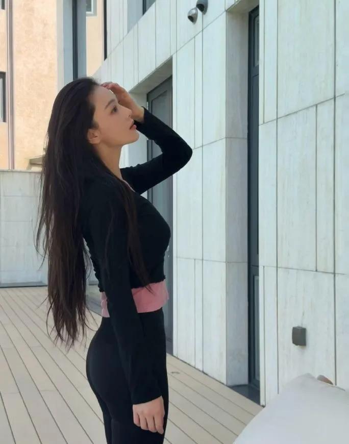 张馨予这腰臀比太绝了! 黑V领上衣+瑜伽裤,粉内搭小心机,把紧致曲线和健康美