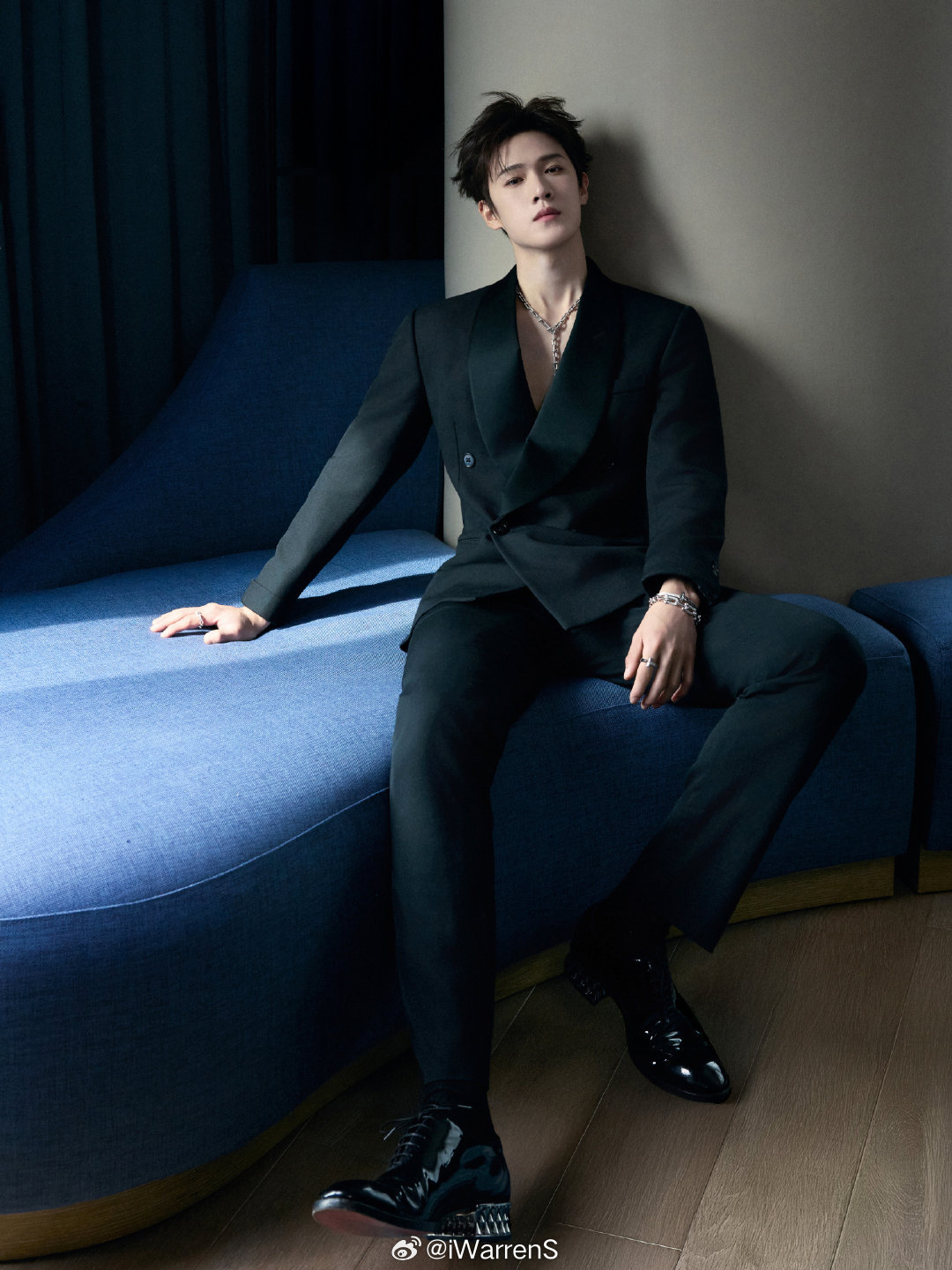 李昀锐黑色深v西装造型出图了呀!小林真的好帅啦!李昀锐深V男神