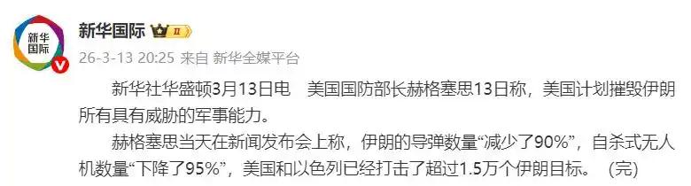 打脸美防长!30枚 “城堡破坏者” 抵达以色列,伊朗导弹“兵器谱”有多少款? 美国国防部长赫格塞思刚说伊朗导弹数量减少了90%, 3月13日凌晨,伊朗30枚 “城堡破坏者” 导弹就抵达了以色列夜空。 伊朗到底有多少款导弹型号? 根据国际战略研究所和战略与国际研究中心的权威数据,伊朗现役可实战的导弹就有30-35款。 其中: 弹道导弹(主力)约18到20款(近程 + 中程 + 高超音速) 巡航导弹约 6到8 款(陆攻 + 反舰) 反舰导弹(含反舰弹道)约 6–7 款 合计约 30到35 款(不含防空 / 空空 / 反坦克) 一、近程弹道导弹约 8到9 款射程小于1000 公里,包括: 1、征服者 - 110(Fateh-110)射程300 公里,采用固体燃料是伊朗导弹主力 2、征服者 - 313(Fateh-313)射程 500 公里,采用固体燃料 3、佐勒菲卡尔(Zolfaghar)射程 700 公里,采用固体燃料 4、齐亚姆 - 1(Qiam-1)射程 800 公里,采用液体燃料 5、流星 - 1(Shahab-1)射程 300 公里,采用液体燃料 6、流星 - 2(Shahab-2)射程 500 公里,采用液体燃料 7、波斯湾(Persian Gulf)射程 300 公里,采用固体燃料,是反舰弹道导弹 8、霍尔木兹 - 1(Hormuz-1)射程 300 公里,采用固体燃料,是反舰弹道导弹 9、霍尔木兹 - 2(Hormuz-2)射程 300 公里,采用固体燃料,是反舰弹道导弹 10、佐勒菲卡尔 - 巴希尔(Zolfaghar-Basir)射程 750 公里,采用固体燃料,是反舰弹道导弹 二、 中程弹道导弹约7到8款,射程1000–2000 公里 1、流星 - 3/3B(Shahab-3/3B)射程1300/1800 公里,液体 2、伊玛德(Emad)射程1700 公里,液体,精度升级 3、卡德尔(Kader)射程1950 公里,液体,大弹头 4、泥石 - 2(Sejjil-2)射程2000 公里,固体,快速反应 5、海巴尔・谢坎(Kheibar-Shekan,城堡破坏者)射程1450 公里,固体,高精度 6、卡西姆・苏莱曼尼(Qassem Soleimani)射程1400 公里,固体 7、霍拉姆沙赫尔 - 4(Khorramshahr-4,城市毁灭者)射程2000 公里,液体,1.5 吨弹头 三、高超音速导弹约2款,2023 后列装 1、法塔赫 - 1(Fattah-1)射程1400 公里,13–15 马赫,乘波体 2、法塔赫 - 2(Fattah-2)射程1500 公里,14–16 马赫,升级版 四、 陆攻巡航导弹约4到5 款 1、苏马尔(Soumar)射程1300 公里,仿 Kh-55 2、霍韦伊泽(Hoveyzeh)射程1350 公里,改进型 3、帕维(Paveh)射程1650 公里,最新远程巡航 4、塔拉耶(Talaye)射程1800 公里,隐身 + 诱饵 5、烈士阿布・迈赫迪(Abu Mahdi)射程1000 公里,反舰 / 陆攻两用 五、 反舰巡航导弹约 3–4 款 1、努尔(Noor)射程120–200 公里,仿 C-802 2、加德尔(Qader)射程250–300 公里,远程反舰 3、波斯湾 - 2(Persian Gulf-2)射程300 公里,超音速 这些导弹预估有2500到3000枚,战时每月产能可提高的约400枚,够美以喝一壶的。
