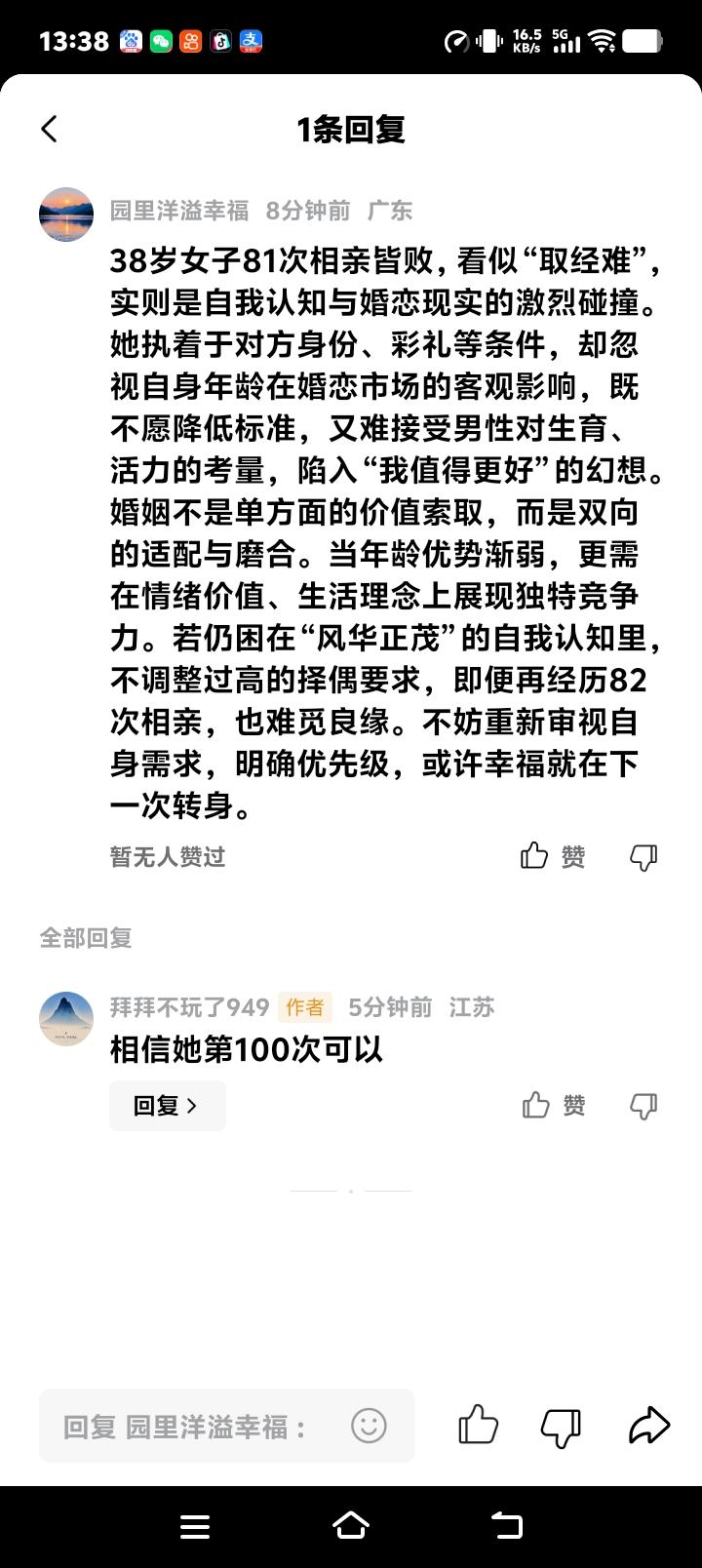 西安相亲角81次全败幕后真相:38岁“娃娃脸”女子被嘲“停电停水”年龄,天价彩礼换不来爱情,全网怒喷婚恋市场残酷现实! 踏入西安相亲角的那一刻,她或许还怀揣着少女般的期待。三十八年的光阴,在她自认的“娃娃脸”上似乎未曾刻下痕迹,可第八十一次相亲的结局,却像一盆冰水,浇醒了她最后的幻想。对方那句“到了停电停水的年龄”,不仅刺痛了她的心,更撕开了当下大龄单身女性面临的集体困境。 这不是她一个人的战争。无数个她,在社会的时钟催促下,奔波于一场场条件的匹配游戏。人们总说,年龄是女性婚恋市场最残酷的标尺,一旦跨过某个数字,仿佛价值就自动打折。可真正让人窒息的,往往是那种被物化的审视——你不再是一个完整的人,而是一串待评估的数据:年龄、生育能力、彩礼数额。 女子坚持的十八万彩礼,成了压垮这次见面的最后一根稻草。男方直言:“有这钱娶年轻姑娘不香吗?”这句话赤裸得令人心惊。当婚姻被简化成一场财务和年龄的算计,感情该何处安放?她愤懑质问:“年龄大就不配拥有爱情吗?”这声呐喊,何尝不是无数在偏见中挣扎者的共同心声。 网友一边感慨“比唐僧取经还难”,一边又冷静指出“没有清晰自我认知”。这种矛盾的舆论场,恰恰映射了现代婚恋的撕裂。我们既同情个体在传统框架下的被动,又不得不承认现实规则的冰冷。她的执着,或许错付给了对“条件”的过度坚持,而忽略了关系中更重要的温度与共鸣。 八十一次失败,真的是因为她要求太高吗?或许,是她还没有遇到那个愿意穿透表面数字,看见她内心柔软的人。社会在批评她“认不清自己”的同时,是否也该反思:我们是否给了大龄单身者足够宽容的选择空间?是否默认了“年纪大就必须妥协”的潜规则? 这场相亲闹剧的终点,不应只是对个人的嘲讽。它更像一面镜子,照出了功利性婚恋观的普遍性。当爱情变成明码标价的交易,当年龄成为攻击的武器,我们每个人都可能成为其中的受害者。幸福从来不是条件的堆砌,而是两颗心能否彼此看见、彼此珍惜。 她的第八十二次相亲会在何时,无人知晓。但希望下一次,她与对方都能放下算计,真诚地问一句:“抛开所有条件,你愿意了解真实的我吗?”也许,答案就在那份真实的勇气里。毕竟,爱情从来不是一场通关游戏,而是两个灵魂的彼此认领。 大龄婚恋困境 彩礼背后的婚姻观