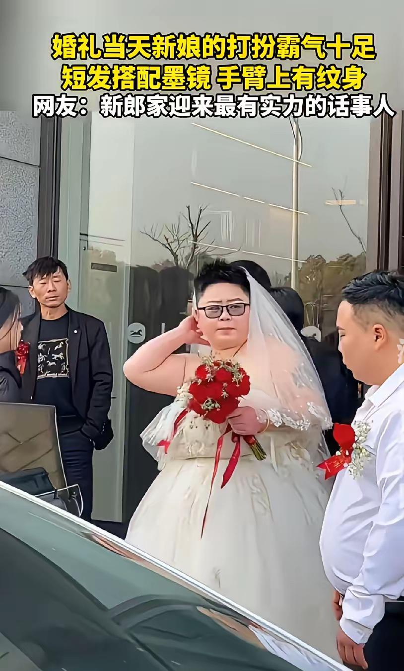 近日,在江苏举办的一场婚礼中,所有人都以为会看见一袭白纱配温婉长发的传统新娘,却在抬眼的瞬间,被这份独一份的霸气狠狠惊艳。 利落短发利落剪裁,不拖泥带水,每一缕发丝都透着飒爽与笃定,褪去了柔婉的修饰,尽显棱角分明的惊艳;一副黑超墨镜架在鼻梁,遮住眼底细碎的温柔,却藏不住眼底的锋芒与从容,自带生人勿近的高级气场,是独属于她的婚礼仪式感。 现场宾客的脚步都不自觉顿住,原本喧闹的婚礼现场瞬间安静下来,所有人的目光都牢牢锁在新娘身上。大家见惯了婚礼上盘发、头纱、温婉妆容的新娘造型,从没想过短发搭配黑超的模样,能在婚礼现场呈现出如此震撼的效果,没有刻意的柔美讨好,只有藏不住的自信与洒脱。 新娘的婚纱没有选择蓬松繁琐的款式,简约的修身剪裁贴合身形,和利落短发形成完美呼应,没有多余的装饰堆砌,每一处设计都贴合她本身的气质。她走在红毯上的步伐平稳坚定,没有丝毫扭捏拘谨,抬手、转身的动作都自然随性,这份由内而外的松弛感,比精致修饰的传统造型更有记忆点。 身边亲友透露,新娘平日里就留着短发,生活和工作中向来干脆果决,从不喜欢被世俗的审美标准束缚。筹备婚礼时,婚庆团队和不少亲友都建议她尝试长发造型,搭配传统头纱,说这样更符合大众对新娘的固有印象,可她始终坚持自己的想法。她觉得婚礼是属于自己的人生时刻,不是演给旁人看的表演,要以最真实、最舒服的状态迎接这份幸福。 新郎全程陪在新娘身侧,看向她的眼神满是宠溺与认可。他从一开始就支持新娘的所有选择,深知爱人骨子里的飒爽与独立,比起迎合世俗的柔美造型,他更想看到新娘做最真实的自己。婚礼上的每一个细节,从婚纱款式到造型搭配,他都全权交由新娘决定,只默默做好陪伴与守护。 现场的长辈们从最初的惊讶,慢慢转为由衷的欣赏。他们见证过无数传统样式的婚礼,却被这份不循规蹈矩的个性打动。大家渐渐明白,婚礼的美感从不是靠固定模板复刻,真正动人的从来不是造型本身,而是当事人藏在细节里的自信与幸福。 这段婚礼画面被分享到网络后,迅速引发大量网友关注。评论区没有质疑另类的声音,满是对新娘的夸赞。大家纷纷表示,美从来没有统一的标准,温婉是美,飒爽也是美,不必为了迎合他人的期待,强行改变自己的模样。 长久以来,婚礼仿佛被设定了固定范式,新娘的发型、妆容、婚纱都有约定俗成的搭配,很少有人敢跳出这个框架。很多年轻人筹备婚礼时,总要兼顾长辈想法、世俗眼光,往往忽略了自己内心最真实的需求。 这位江苏新娘的选择,恰恰戳中了当代年轻人的心声。婚礼的核心是见证爱情、宣告幸福,不是标准化的流程展示。敢于抛开世俗的审美枷锁,在人生最重要的仪式上忠于自我,这份勇气远比任何华丽装饰都珍贵。 仪式进行到互动环节,新娘摘下墨镜,眼底的温柔毫无保留地展现出来,飒爽气场下的柔软格外动人。她看向新郎的眼神满是真挚,和红毯上的笃定形成温柔反差,让所有人都感受到这份独属于她的浪漫。 真正的仪式感,从来不是复刻别人的幸福模板,而是活出专属自己的姿态。这位新娘用一场打破常规的婚礼证明,幸福没有固定模样,自信做自己的时刻,永远是最耀眼的存在。 各位读者你们怎么看?欢迎在评论区讨论。