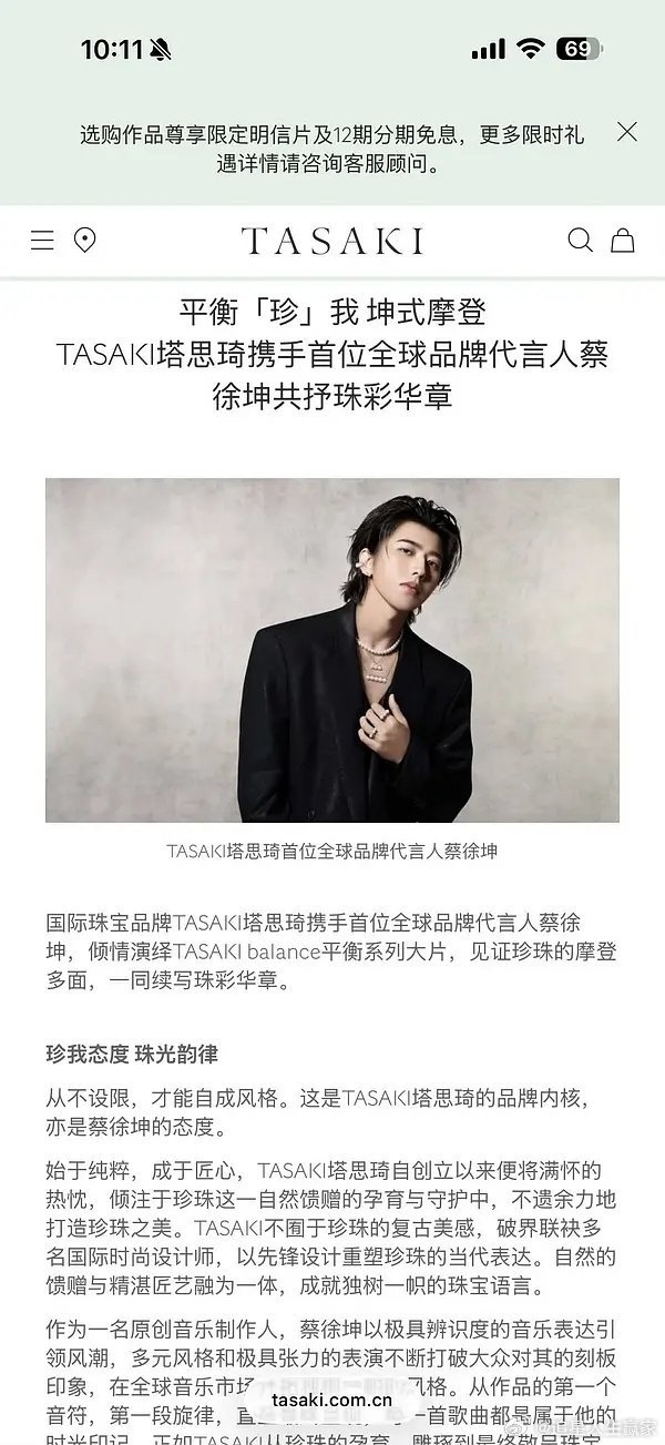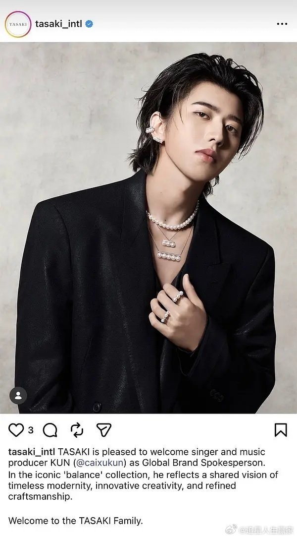 蔡徐坤外网官宣TASAKI塔思琦全球品牌代言人外网先宣!!恭喜TASAKI空降首