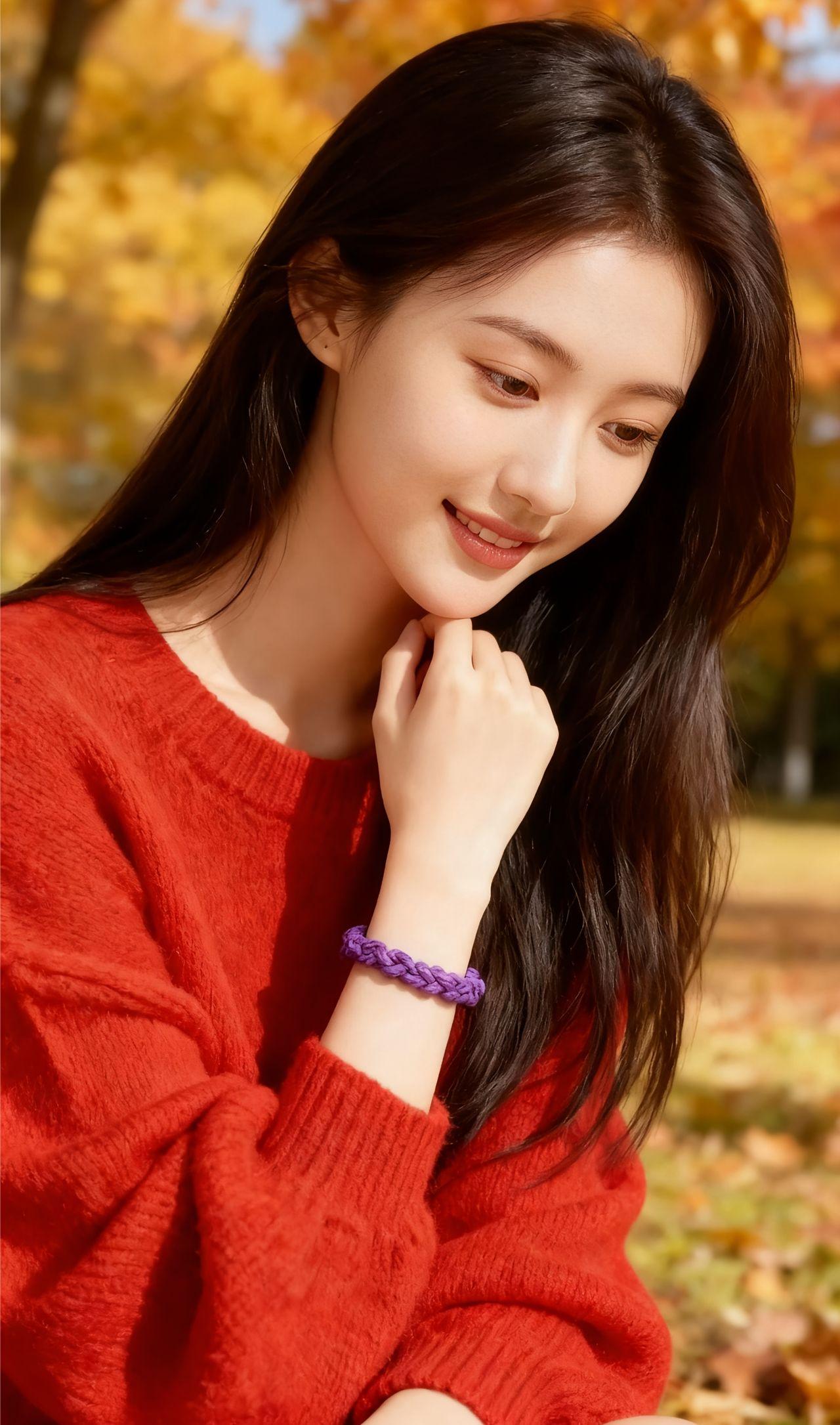 秋日午后,少女与绿植相伴,静坐长椅,悠然自得。