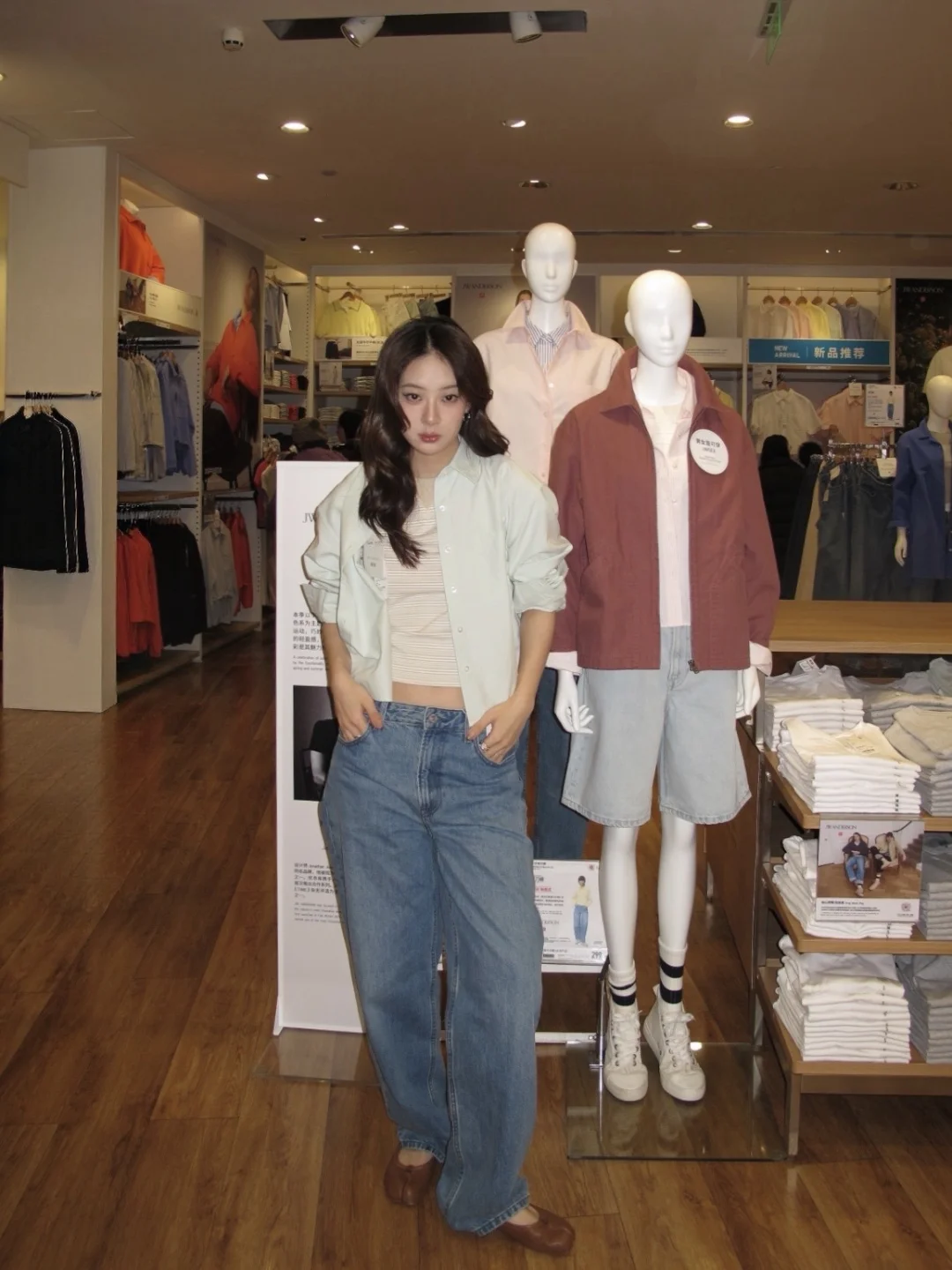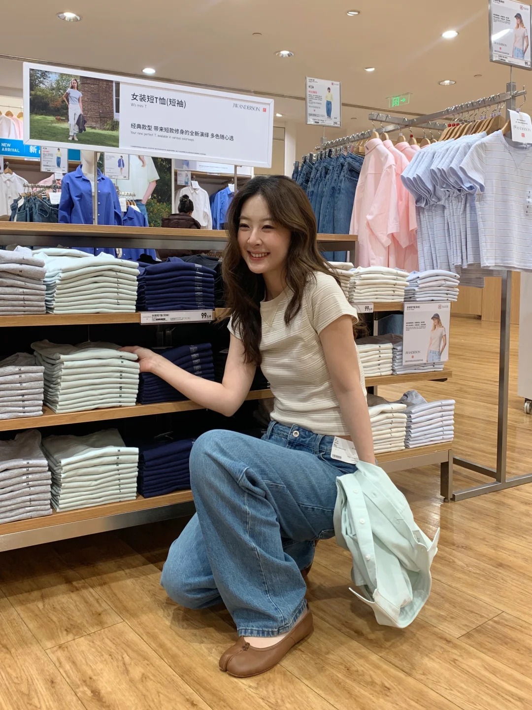 普天同庆 朋友告诉我优衣库JWA限时降价了 马不停蹄就来逛了! 终于等到了春夏新品好价! 给自己搭了套入春穿搭 牛津纺箱型衬衫+条纹T恤+牛仔弯刀裤 把春日慵懒感焊在身上☺️ 浅绿色的牛津纺箱型衬衫,短款版型显高,面料挺括又透气,当外套或者叠穿都非常不错 低饱和色系的条纹T恤中和衬衫亮度,露出腰线更显比例,而且下摆还有JWA标识 牛仔弯刀裤的弧度很修饰腿型, 上身呈现出漂亮的锥形还能藏肉显瘦 用基础款玩层次,浅色系+宽松剪裁 就喜欢越看越舒服的耐看型穿搭 今天起到3/19前到店还有惊喜~ 优衣库JWA的外套、衬衫、牛仔裤 C系列的多款阔感大师卫衣都有春日好价 快来入手啦~