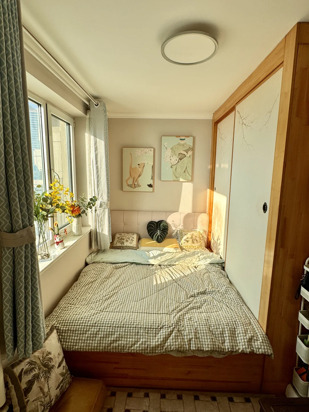 仅仅不到9平方的小卧室,被我改成了三面包围的榻榻米房间,睡起来超级有安全感的。