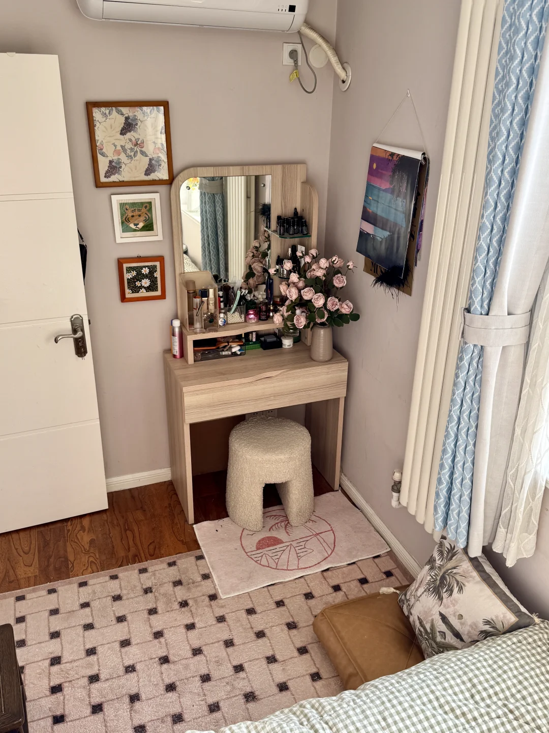 床尾也空出来了自由活动的空间,还可以放个小梳妆台。