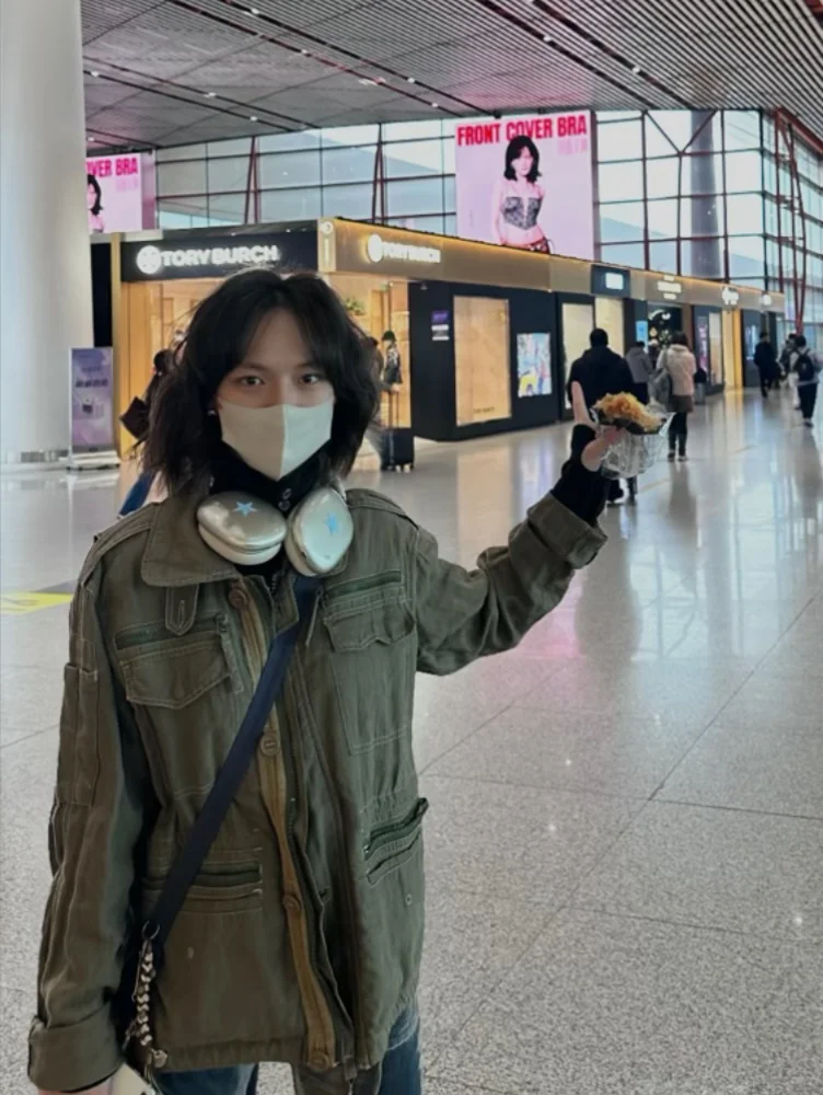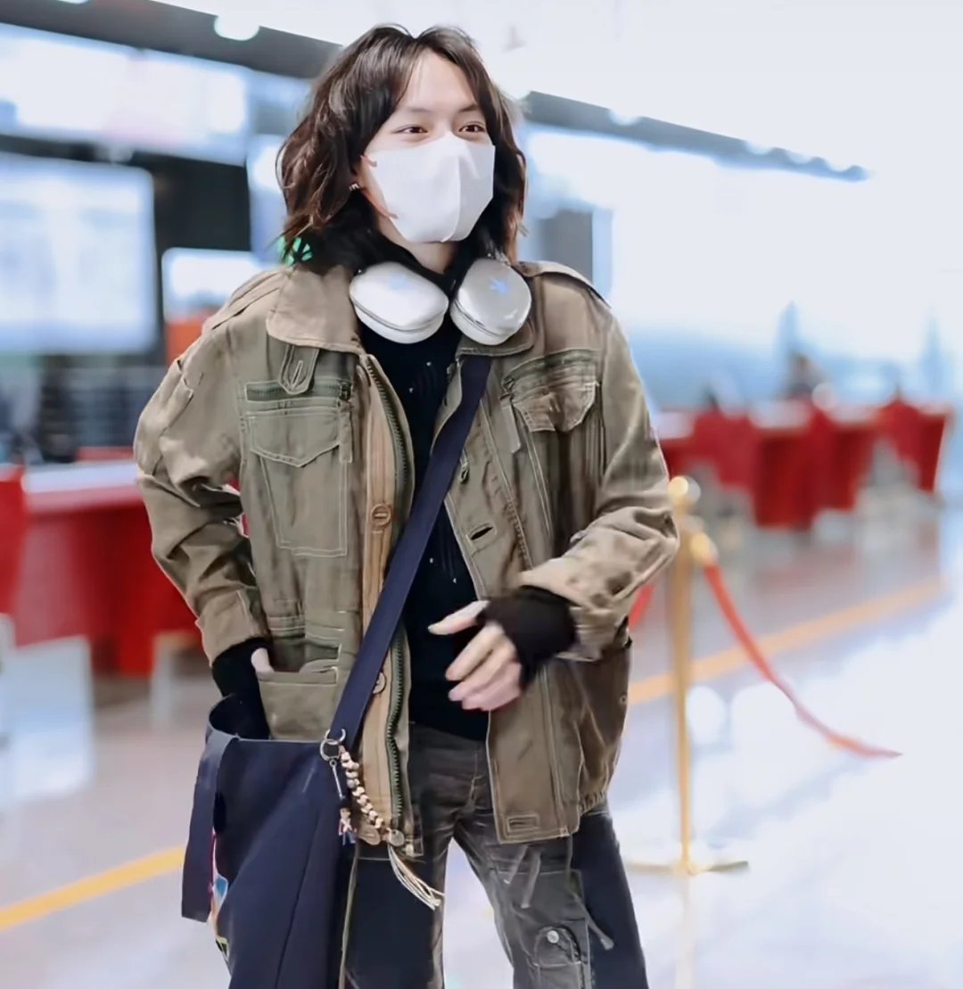 文淇机场打卡自己,老淇这身是真的酷