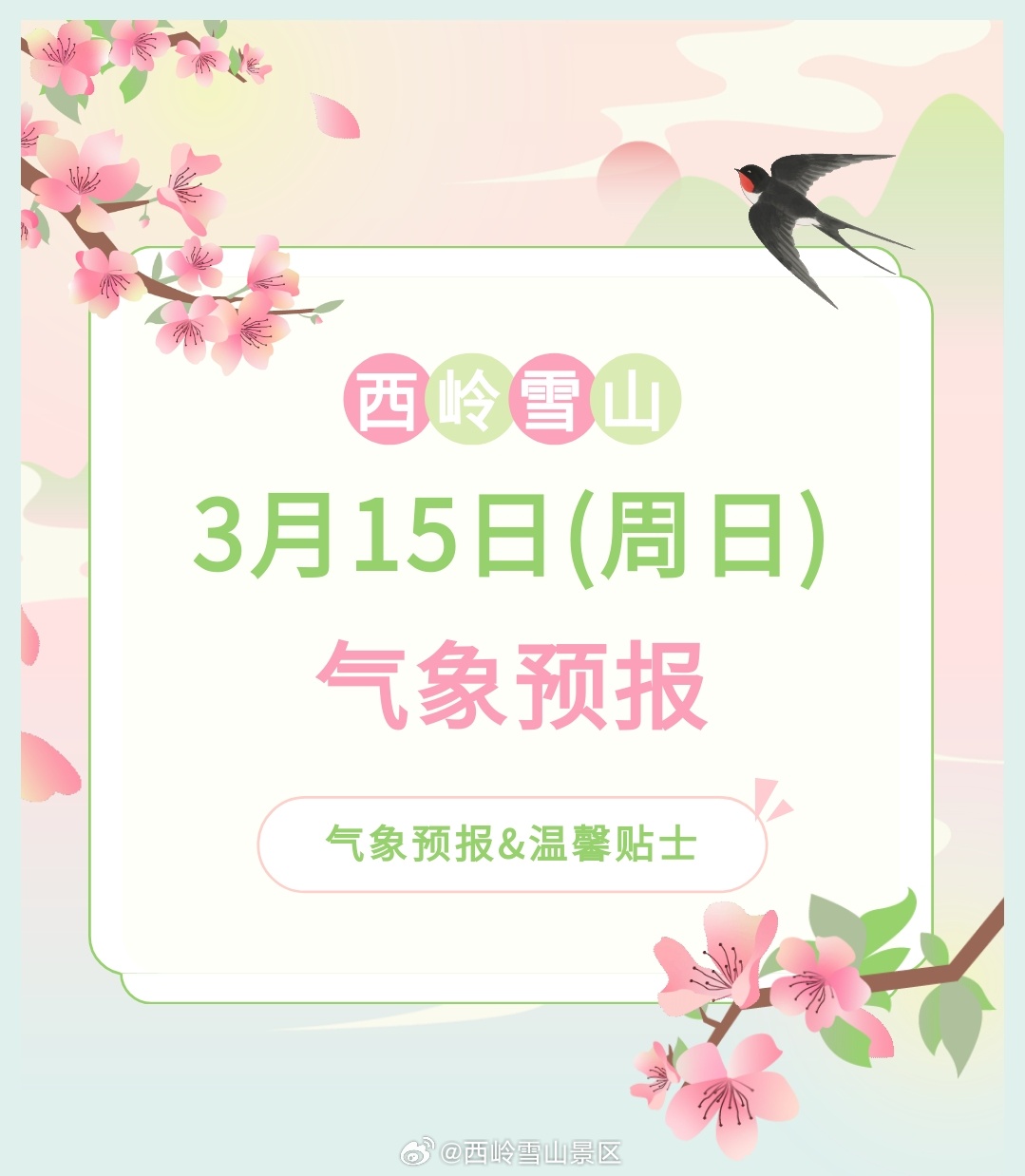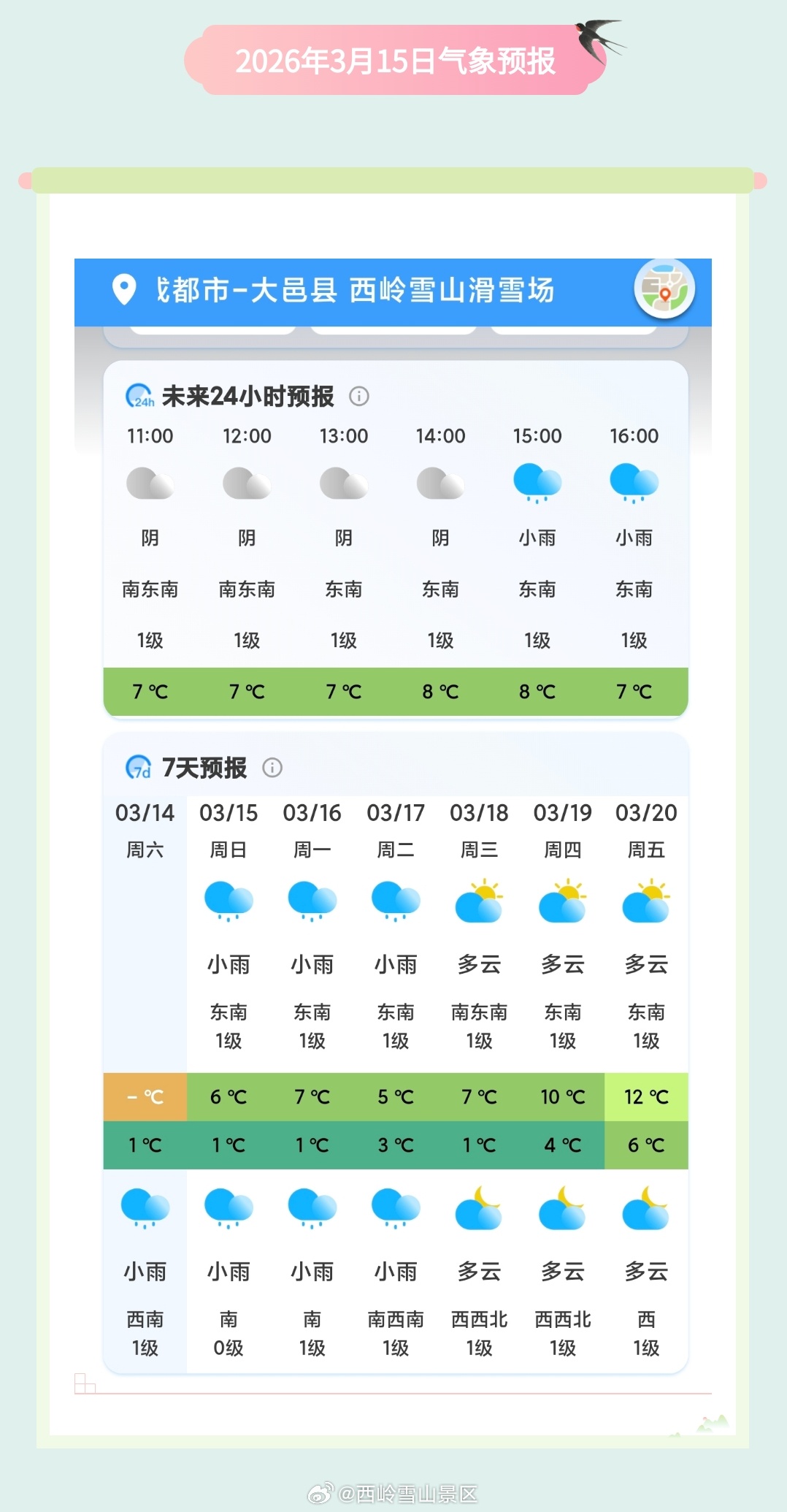 西岭雪山3月15日(周日)气象预报#西岭雪山#