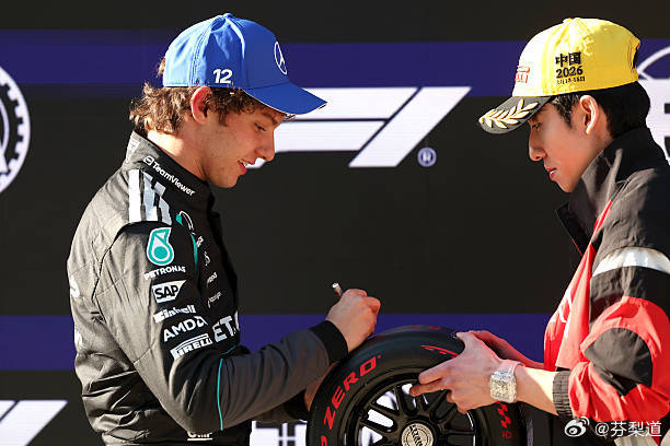 2026F1中国大奖赛林孝埈为安东内利颁小轮胎小林给小KIMI发小轮胎,安东内利